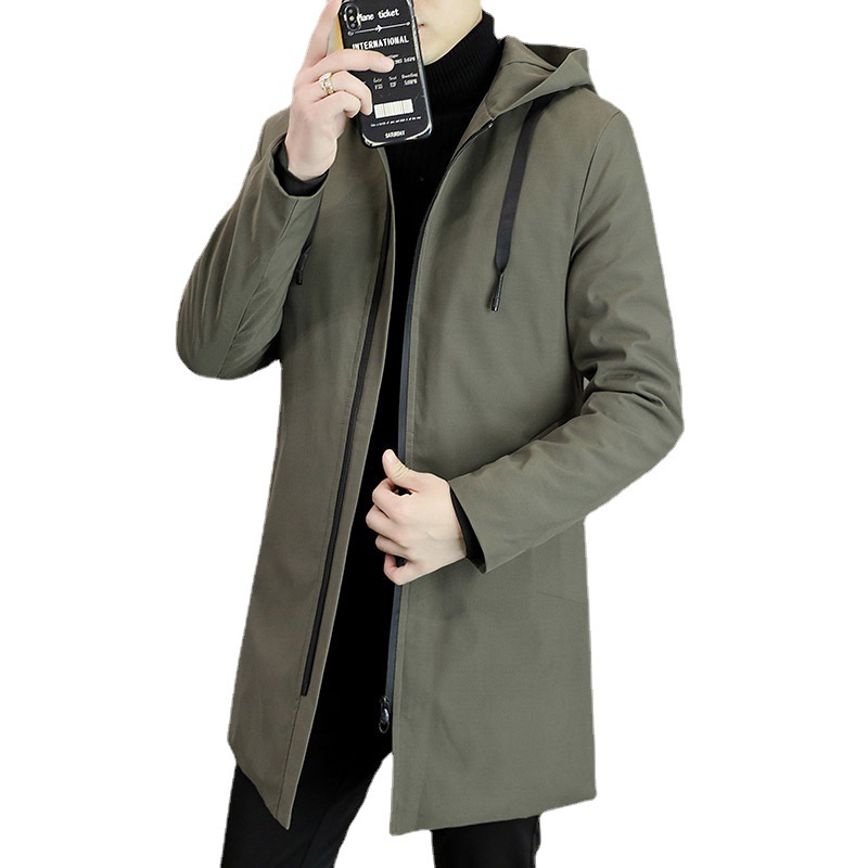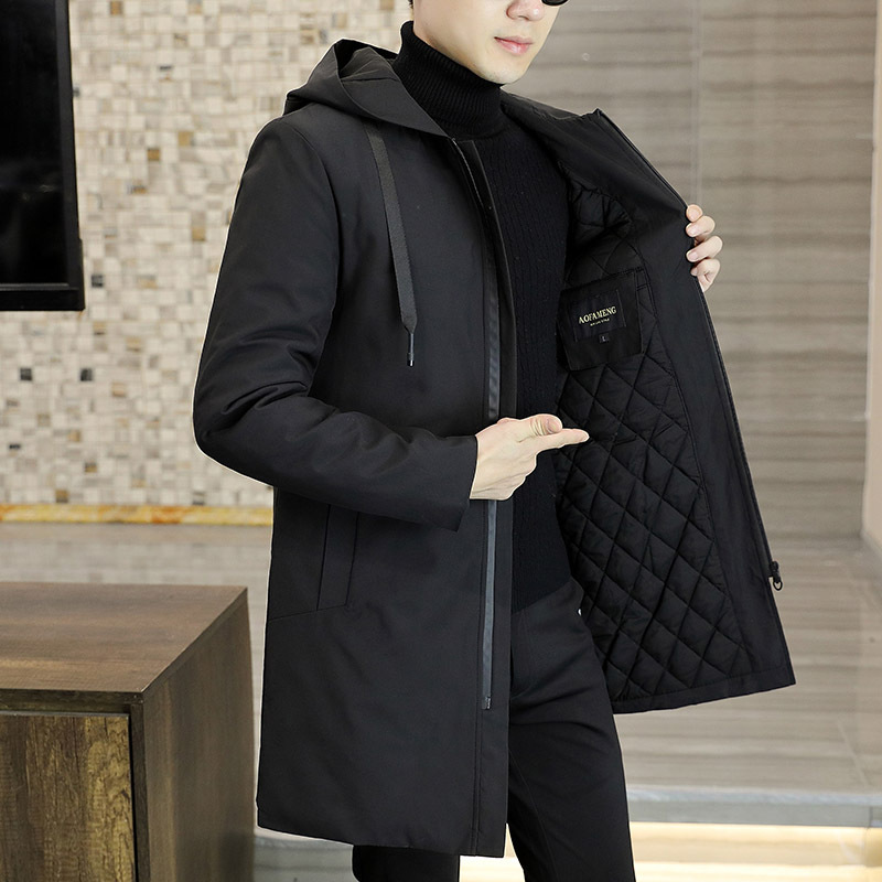 Трансграничные поставки, однотонная Толстая стеганая куртка средней длины, Мужская зимняя новая молодежная теплая куртка с капюшоном и хлопковой подкладкой