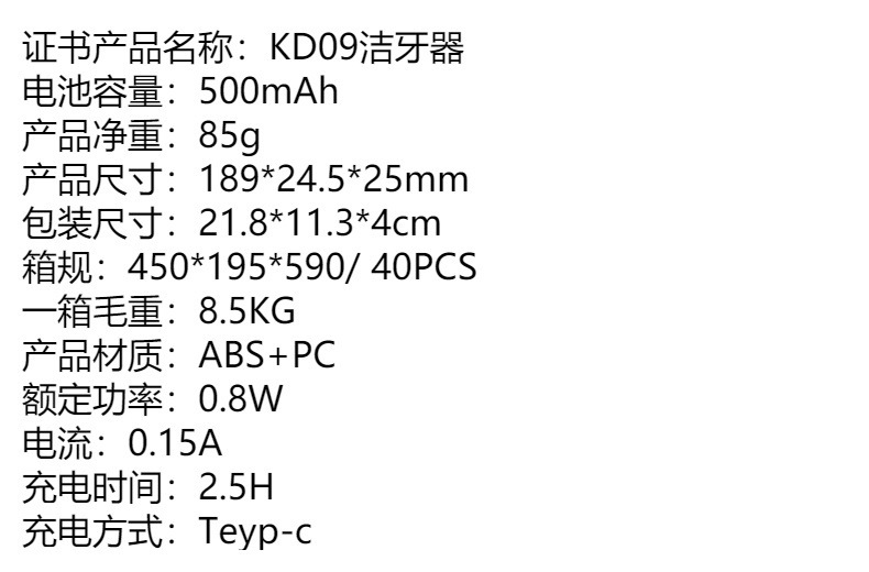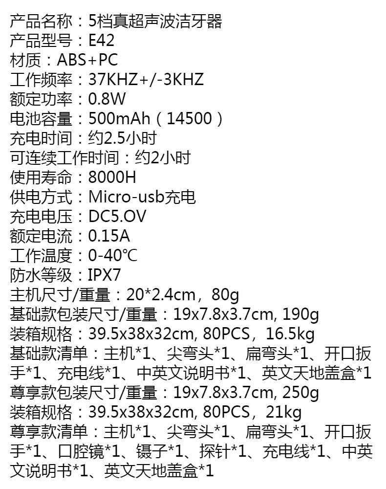 Зубной очиститель, Зарядный кабель, Инструкция по эксплуатации, Зубная головка