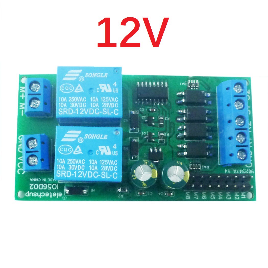 This module has 4 signal input terminals, namely ''K1'', ''K2'', ''S1'', ''S2'', K1 is the forward rotation signal input terminal, K2 is the reverse rotation signal input terminal, and S2 is the forward rotation limit signal Input terminal, S2 is the reverse limit signal input terminal. The signal input source can be selected from micro switch, induction, infrared, metal, remote control and other modules, and can also be controlled by a single-chip microcomputer.