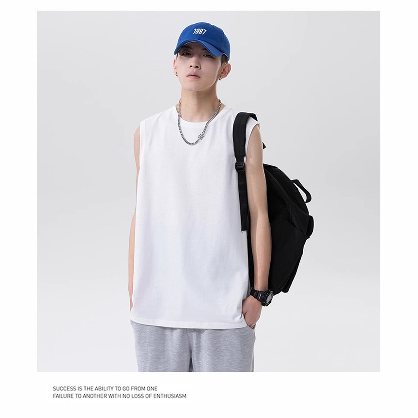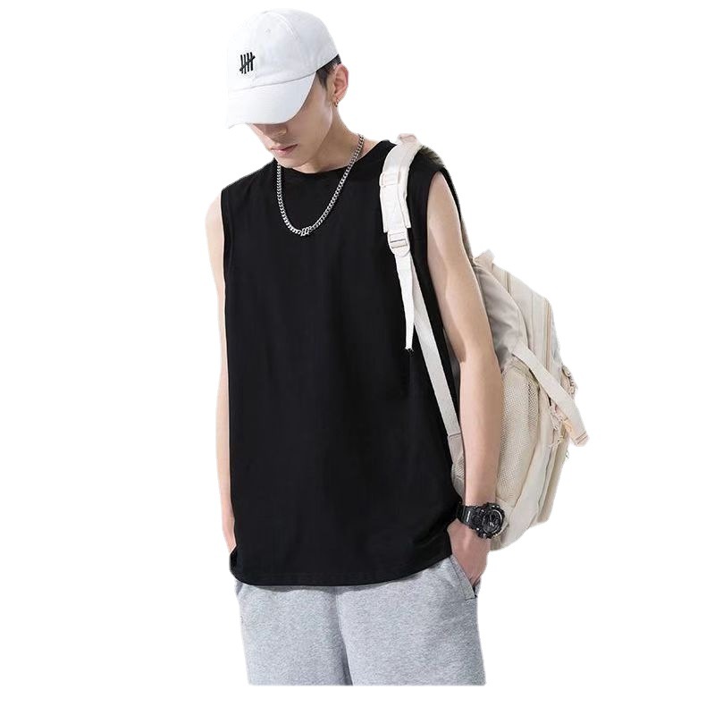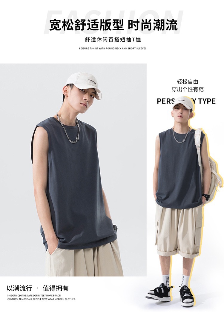 Лето 202, мужской спортивный жилет без рукавов из чистого хлопка, корейский стиль, новая однотонная рубашка с круглым вырезом, оптовая продажа