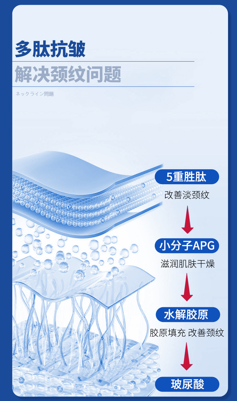 Маска-патч для шеи QIANZI с полипептидным коллагеном против морщин, патч от морщин на шее, увлажняющая и осветляющая тонкие линии, маска-патч для шеи.