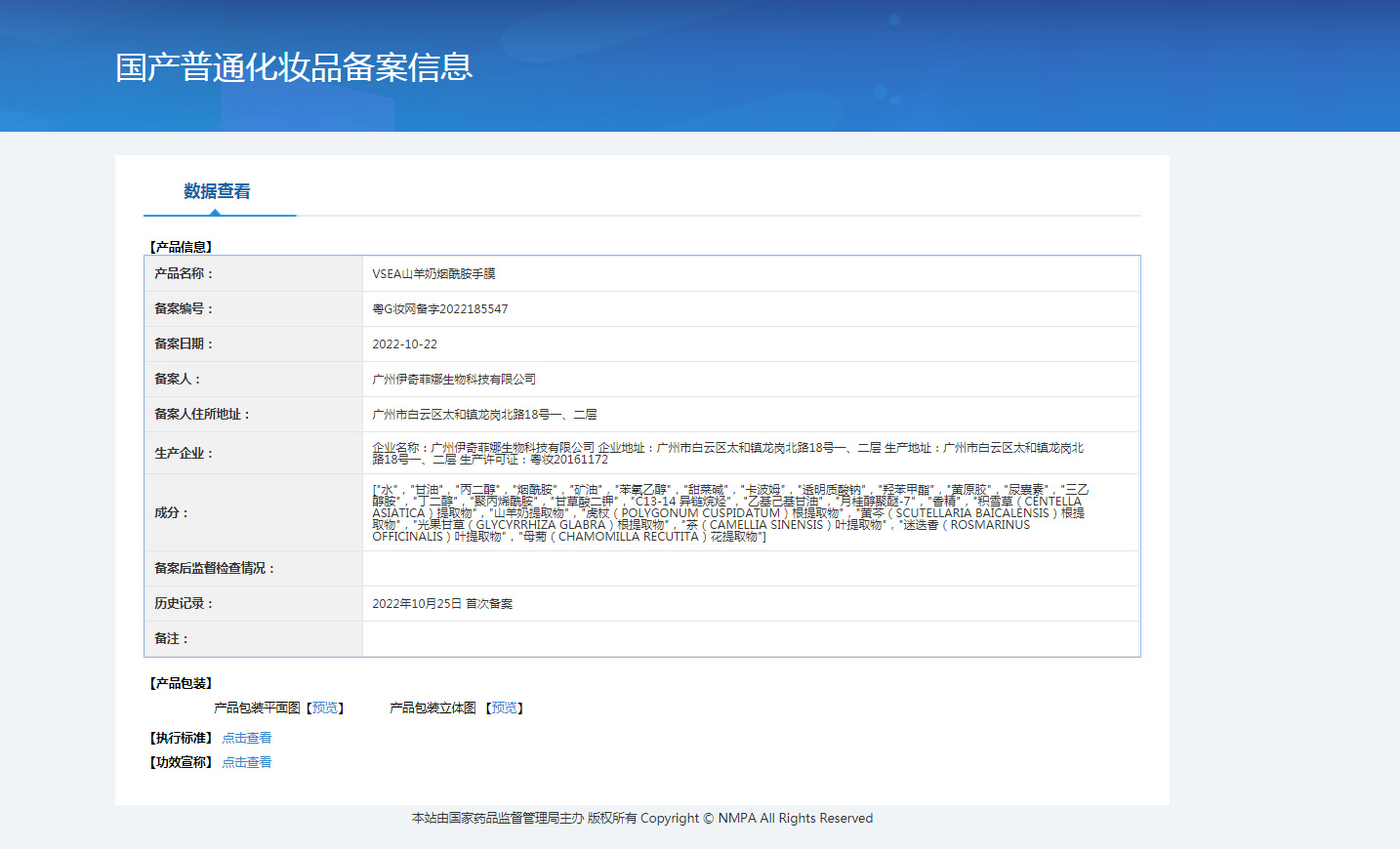 Гуандун G, регистрационный номер сети макияжа: 2022185547