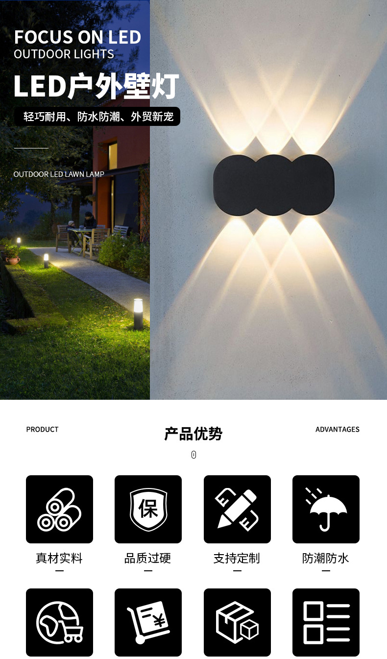Наружный водонепроницаемый настенный светильник в современном стиле для сада и виллы, двусторонний светильник для двора с поверхностным освещением