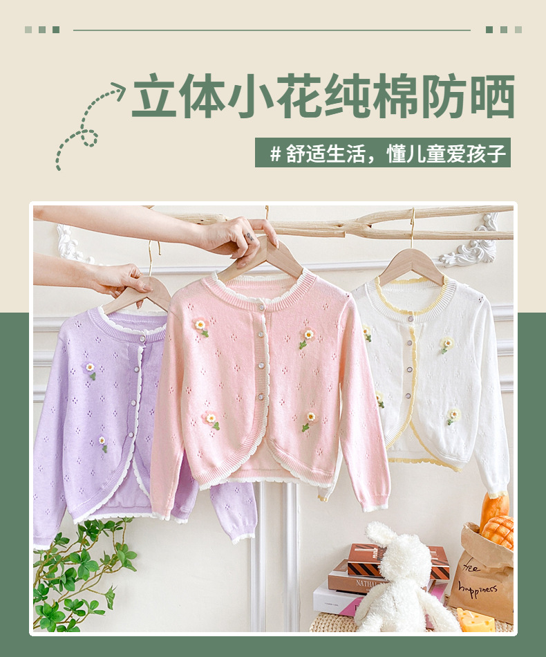 Кардиган для девочек, свитер 2023, весенне-летний детский вязаный полый кардиган из чистого хлопка в западном стиле, легкая дышащая рубашка с кондиционером