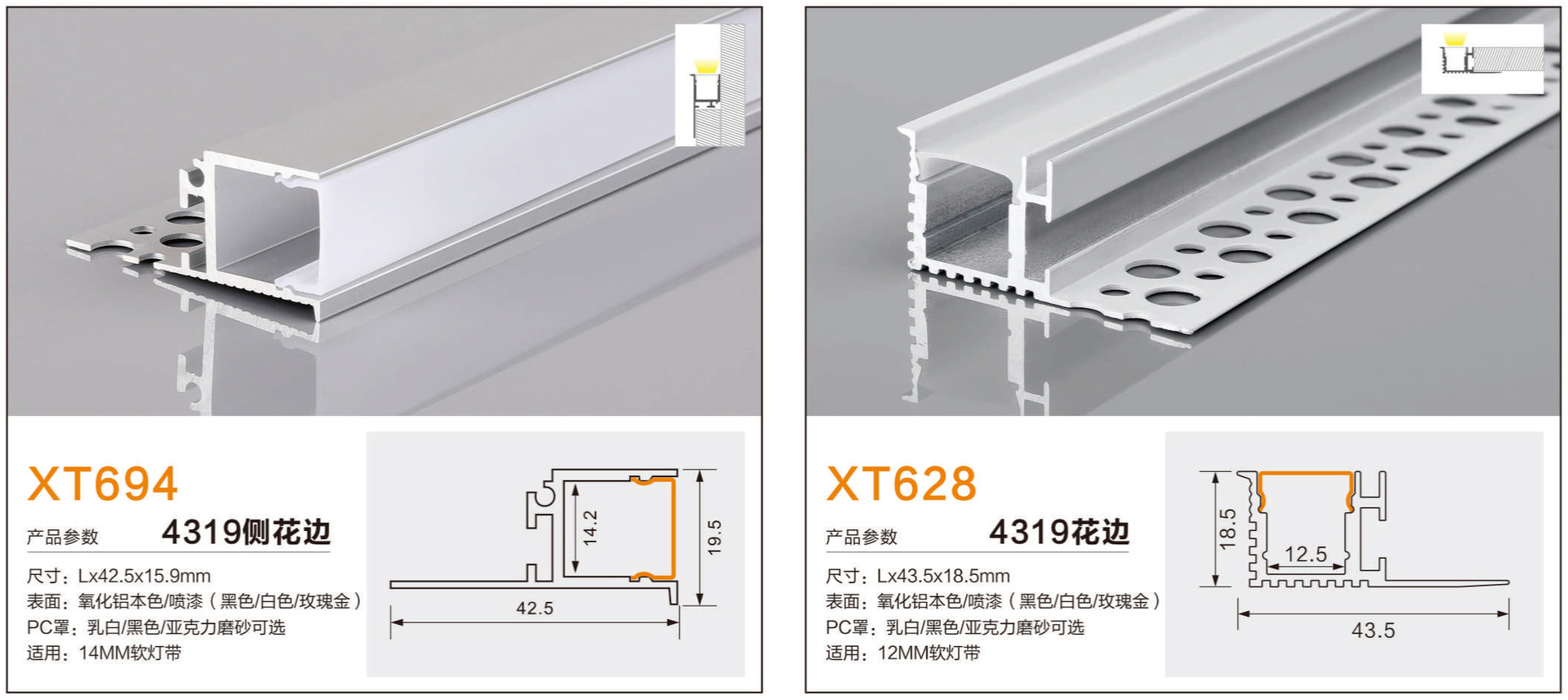 Цена за 1 метр/серебристый алюминиевый желоб + Опаловый абажур; Цена за 1 метр/серебристый алюминиевый желоб + черный абажур