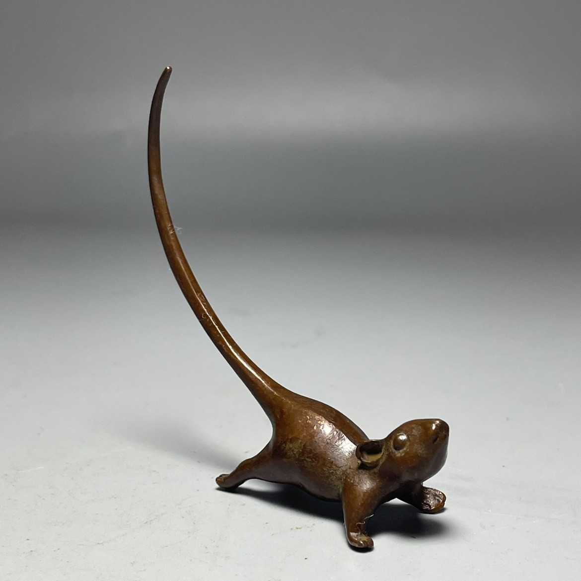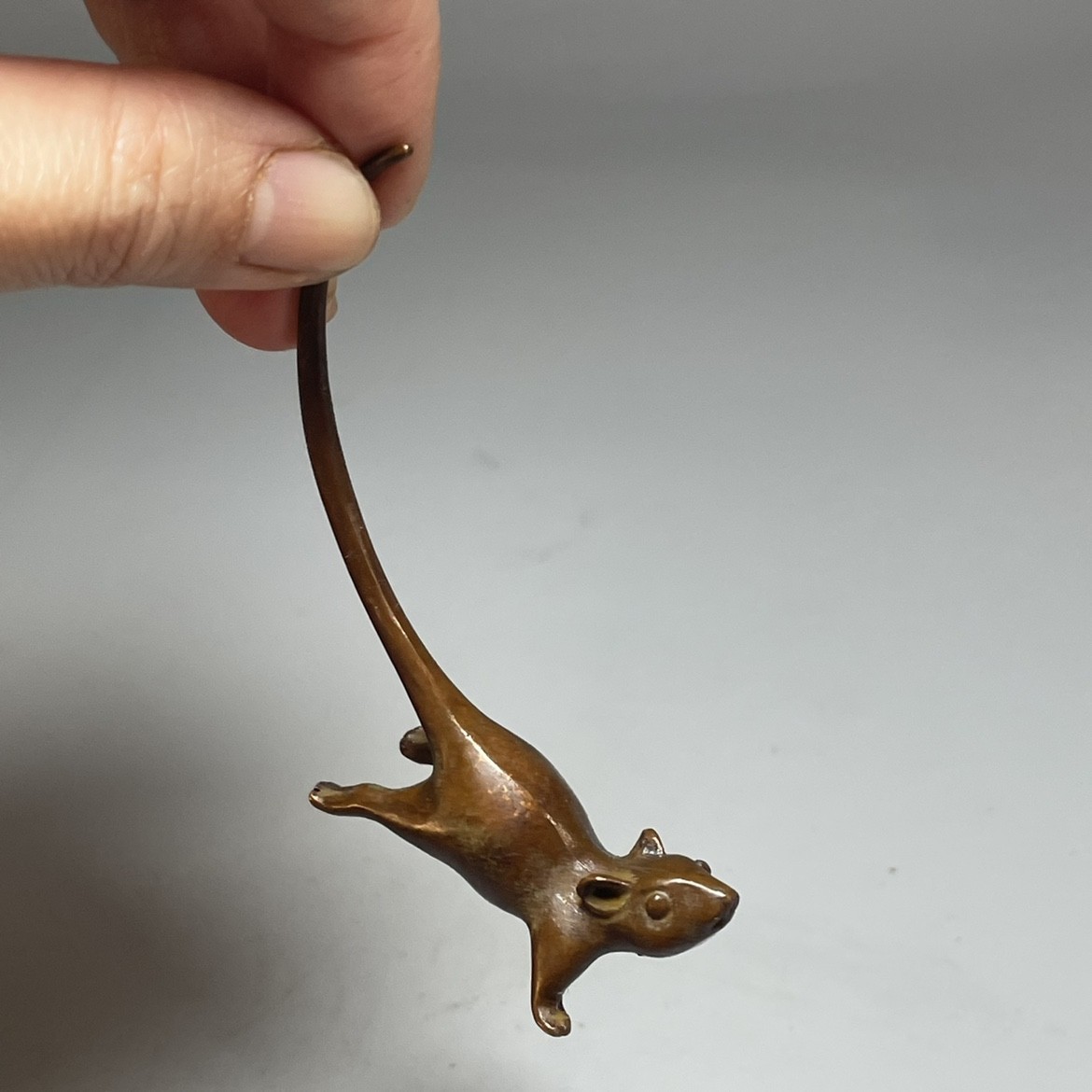 Античный Твердый Медный Зодиак Маленькая Мышь Счастливый Длинный Хвост Мышь Творческий Симпатичный Чай Церемонии Чай Украшения Для Животных