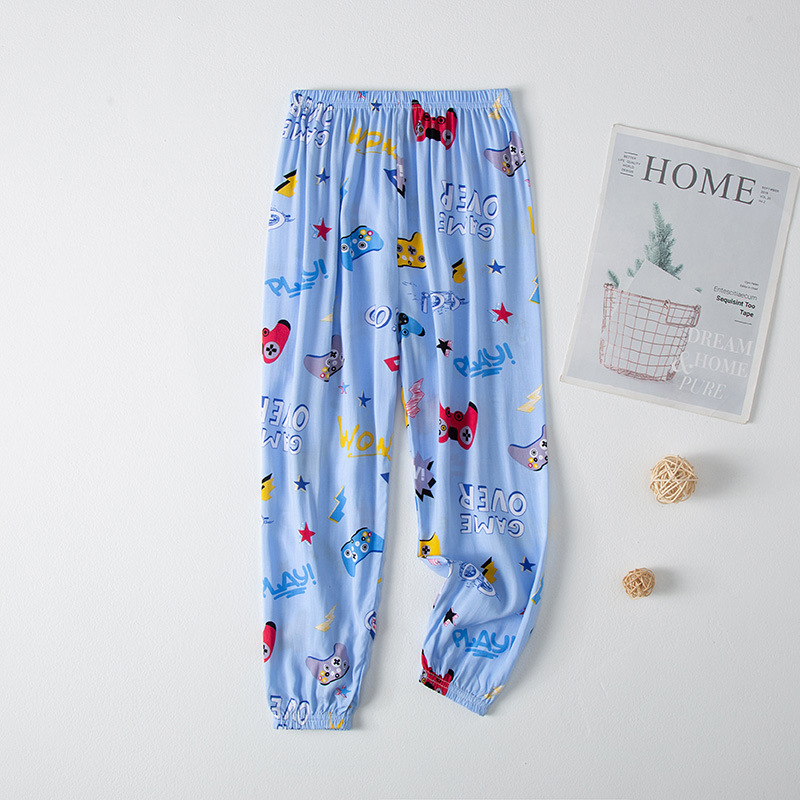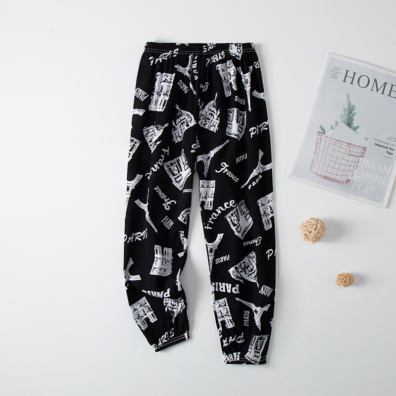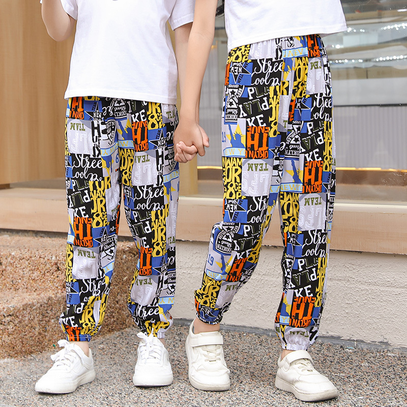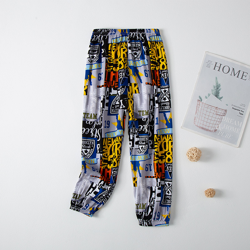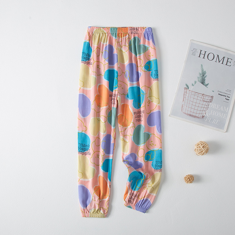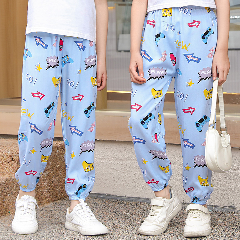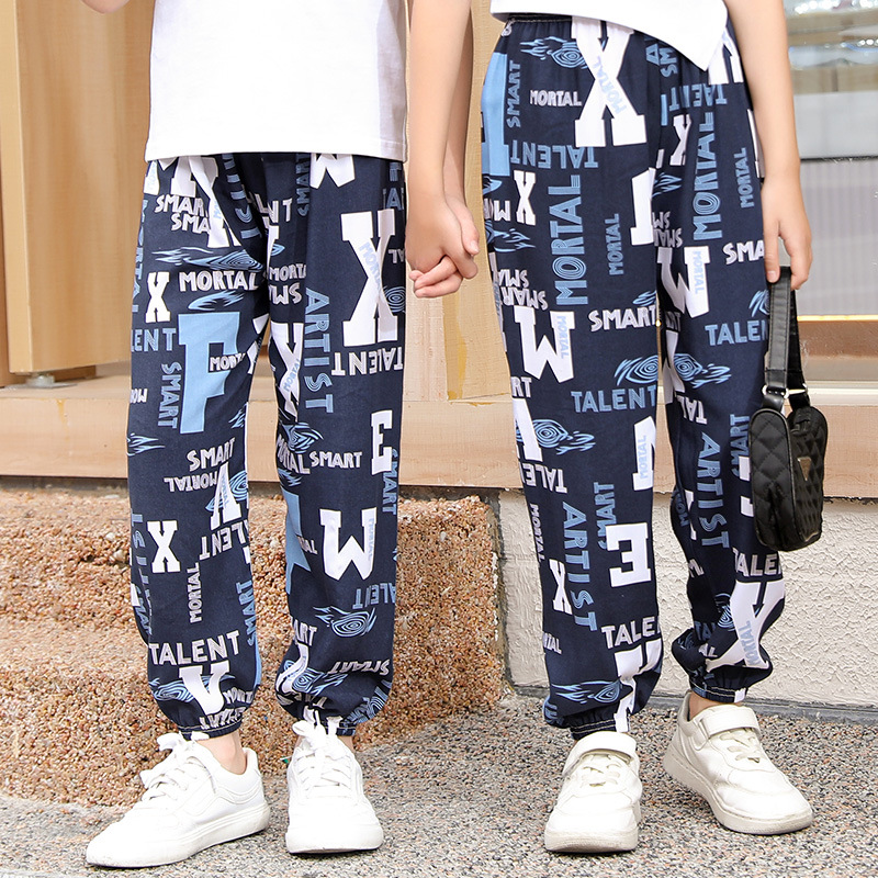 2023 новые летние детские хлопчатобумажные брюки с принтом, детские свободные дышащие домашние брюки-фонарики с завязками на щиколотке