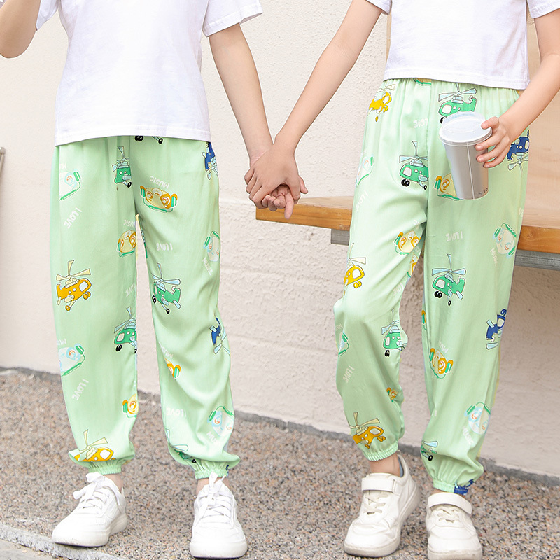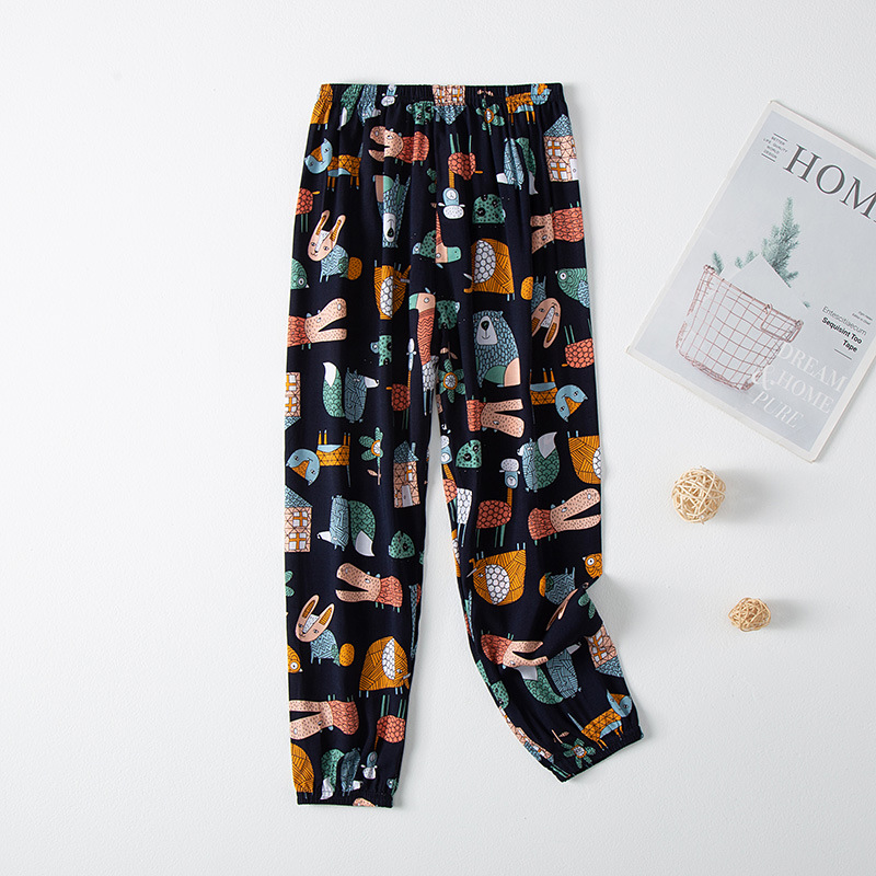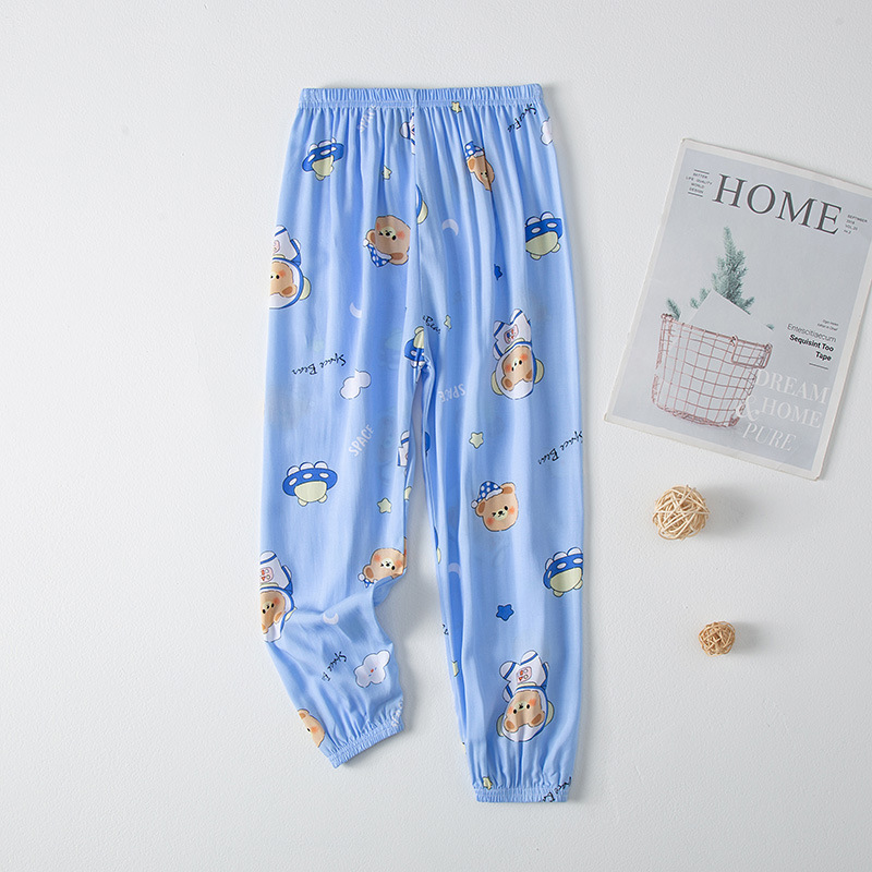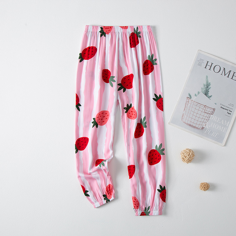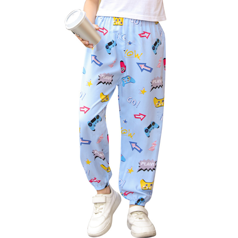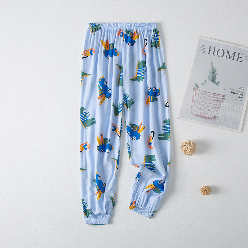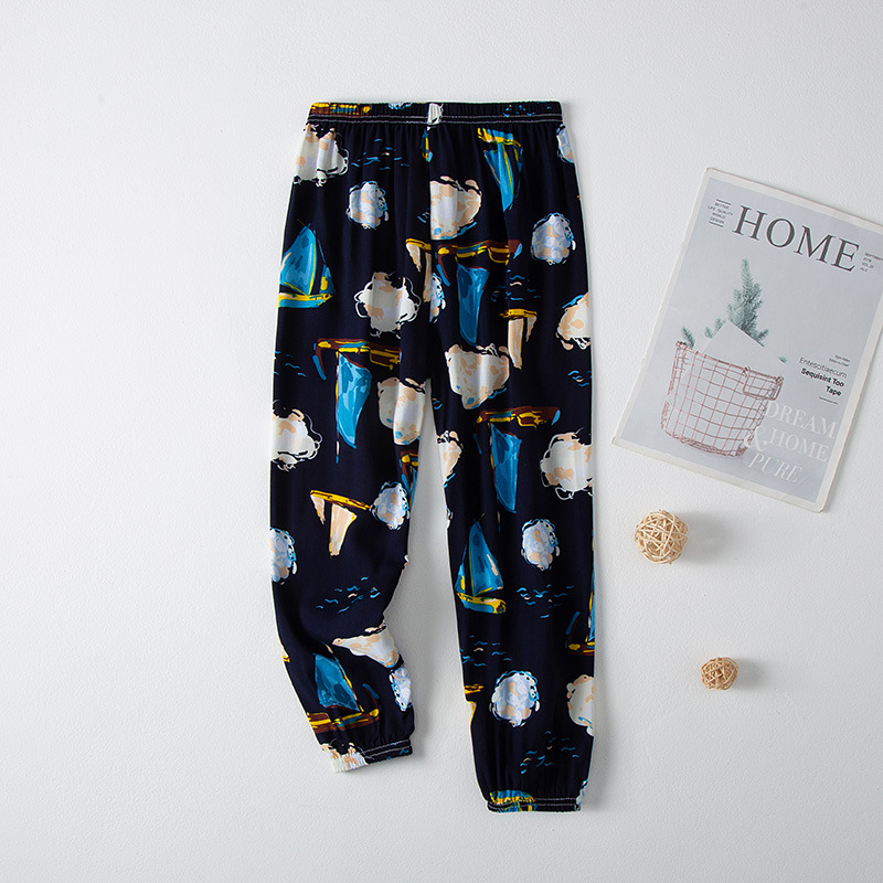 2023 новые летние детские хлопчатобумажные брюки с принтом, детские свободные дышащие домашние брюки-фонарики с завязками на щиколотке
