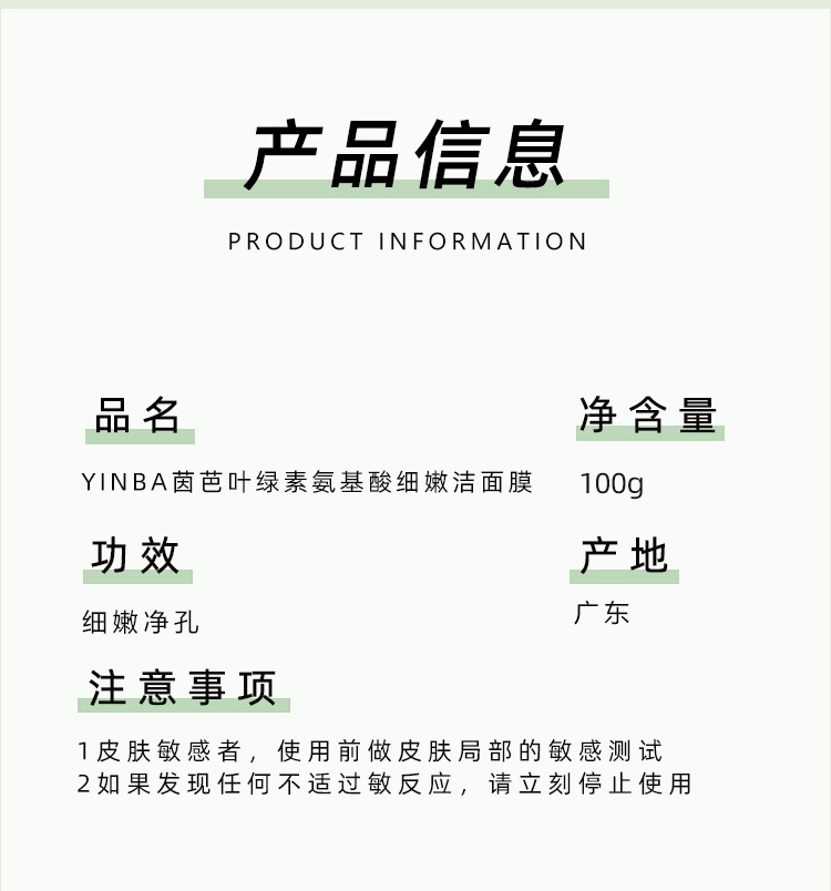 YINBA хлорофилл аминокислота деликатная очищающая грязь