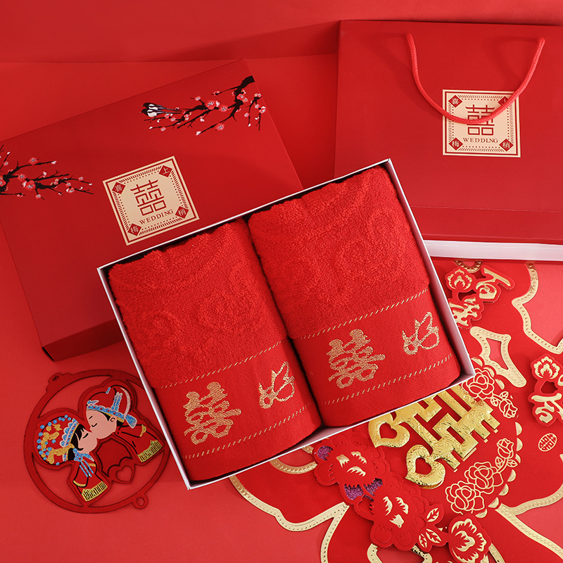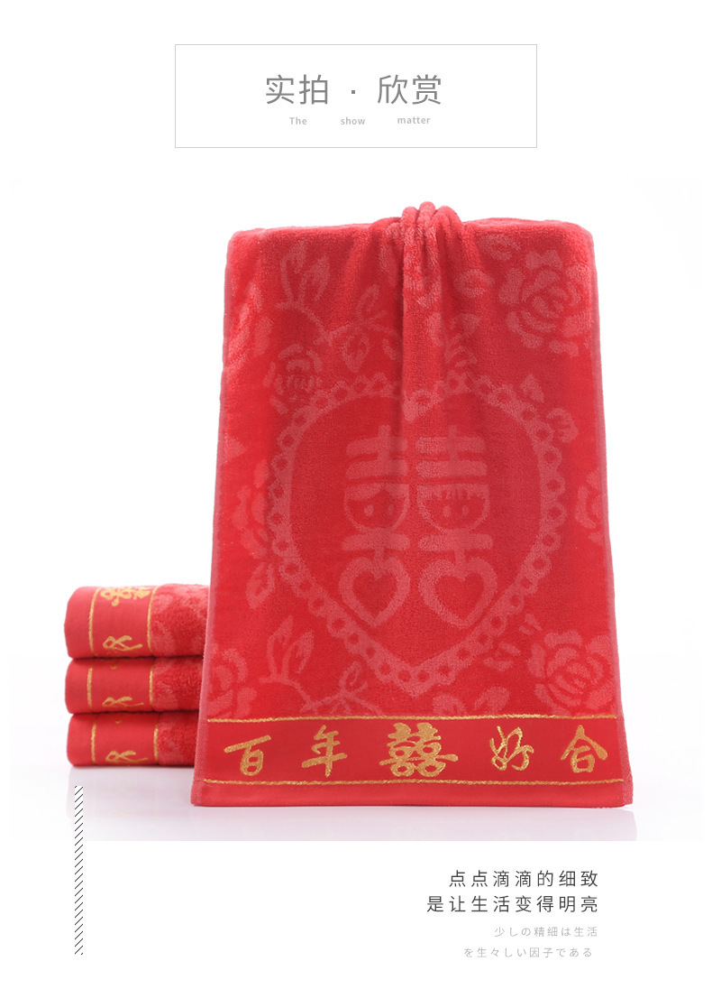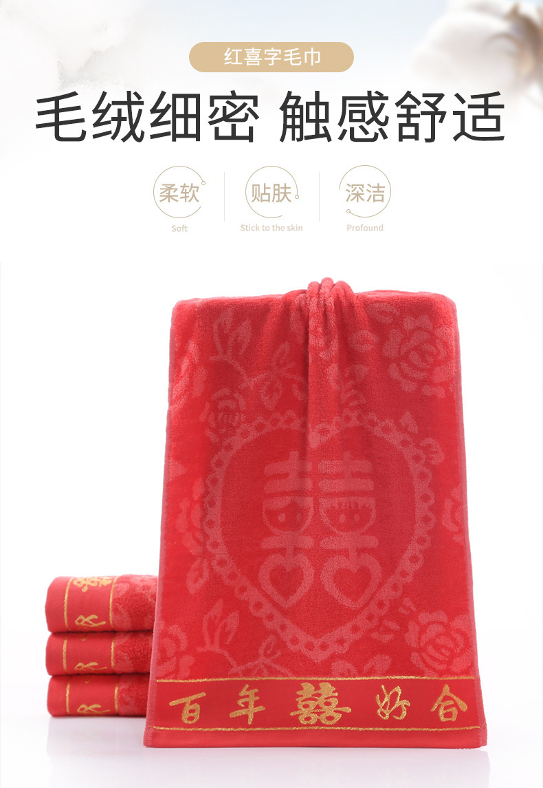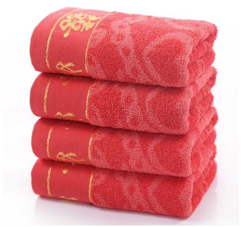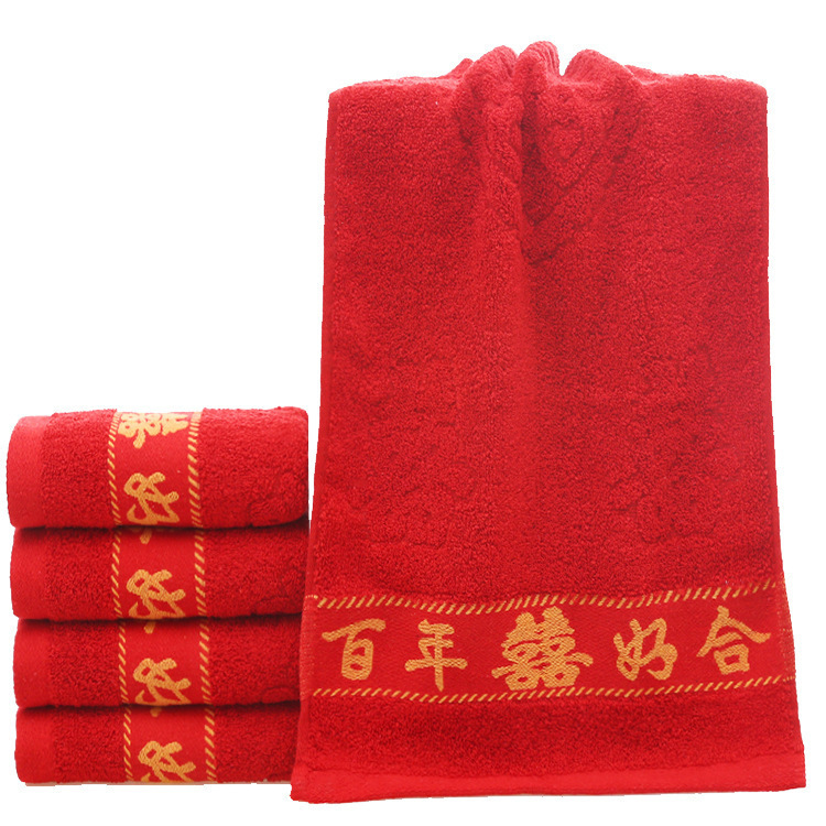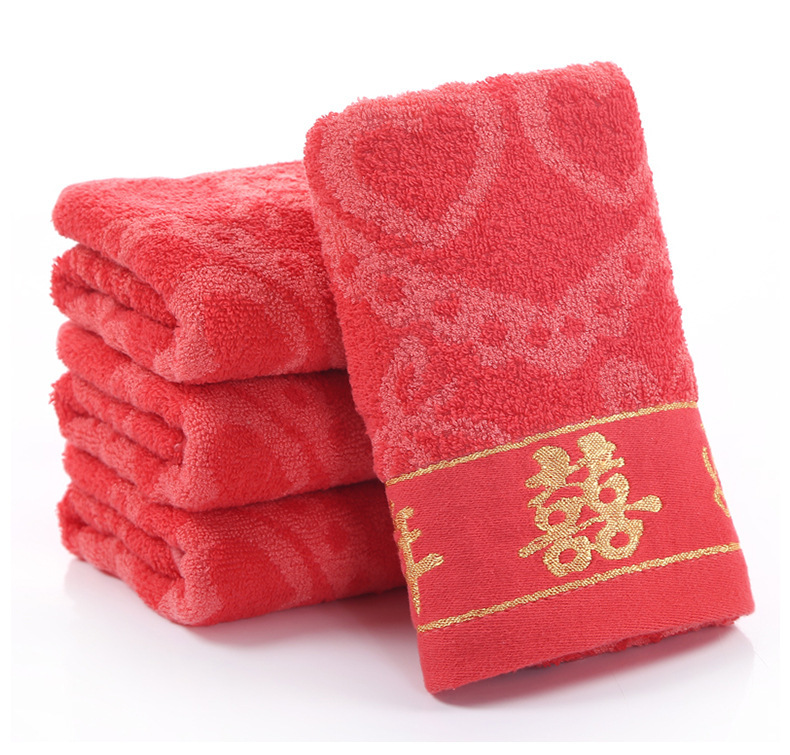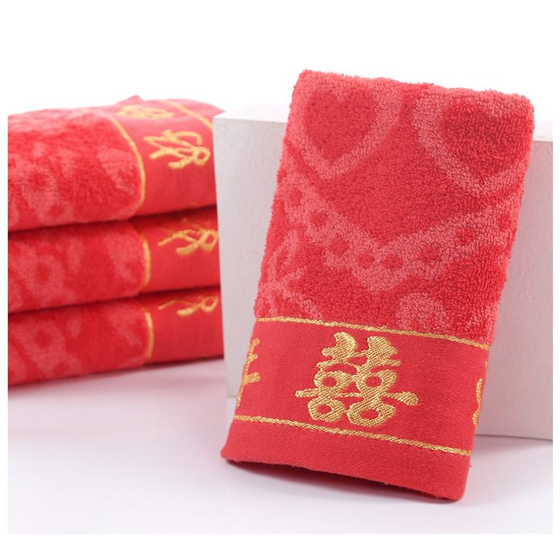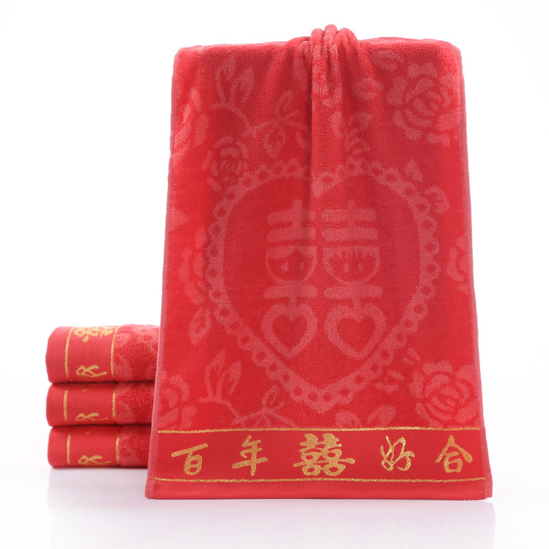 Свадебное полотенце, из чистого хлопка, утолщенное, праздничный подарок на свадьбу в знак двойного счастья, свадебное полотенце для пар, с напечатанным логотипом, большое красное полотенце.