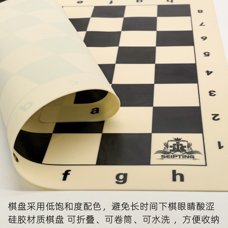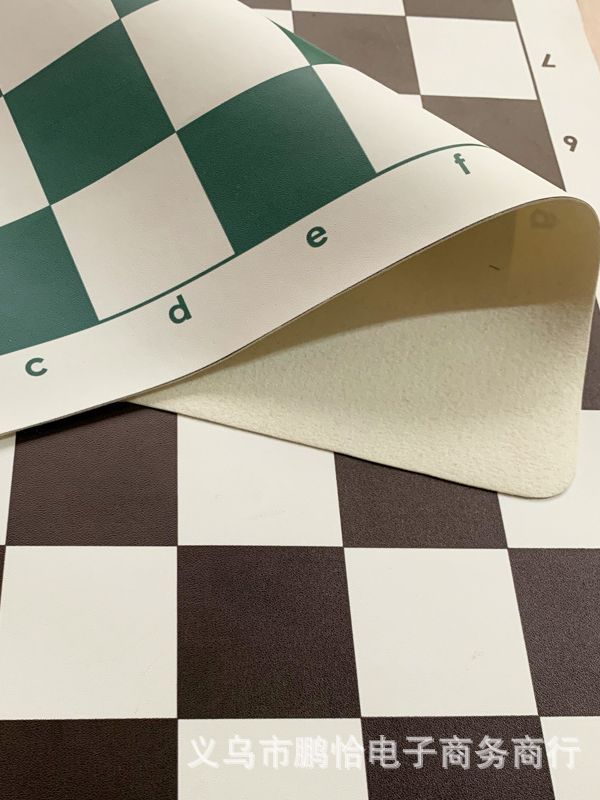 单面64格国际象棋皮革软棋盘 ,可卷筒可折叠 。