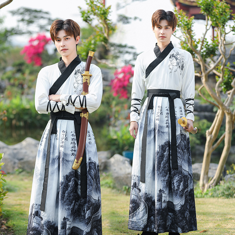 Мужская антикварная фехтовальщик для боевых искусств Hanfu, мужской костюм больших размеров для студенческого класса, костюм в китайском стиле, весенне-осенний костюм Чун Цзы
