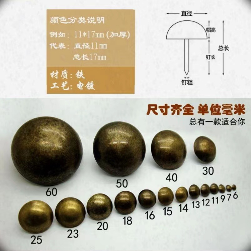 Китайские антикварные гвозди для обивки из чистой меди, гвозди для диванов, кнопки, гвозди с круглой головкой, гвозди для мягкой и жесткой обивки, гвозди для обоев, круглые гвозди