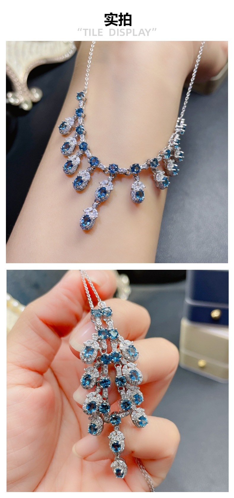 Ожерелье из натурального топаза S925, инкрустированный серебром, главный камень 3*4