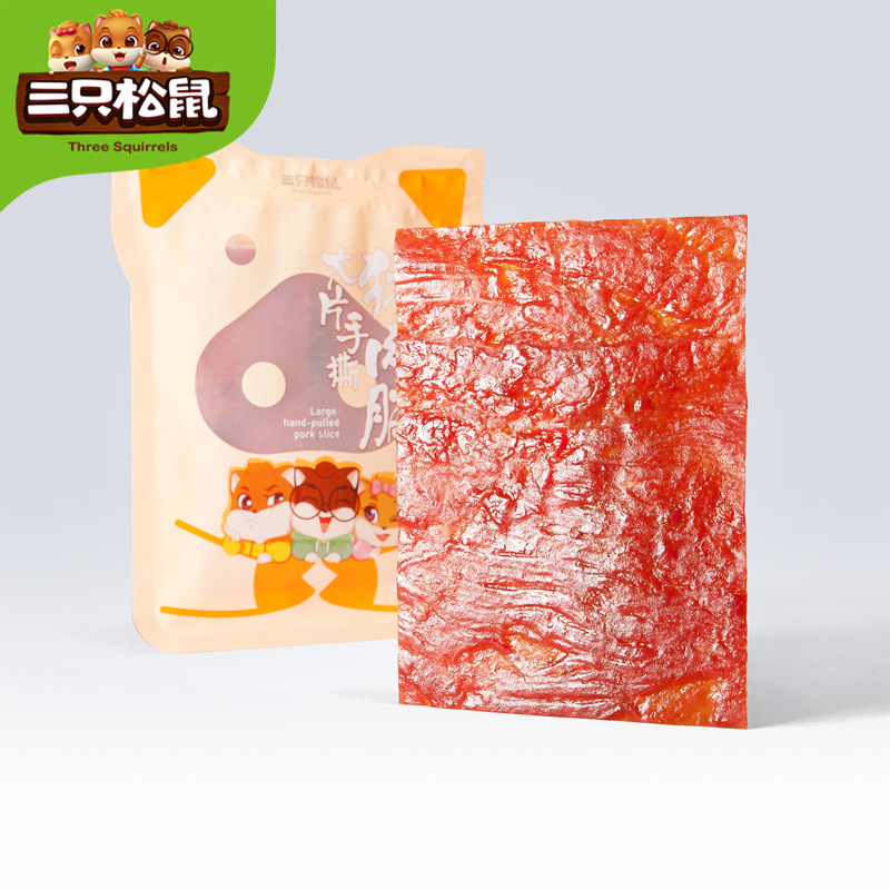 Мясные снеки Three Squirrels (Три Белки) с крупными кусочками мяса, 50 г, в стиле Цзинцзян, для повседневного перекуса