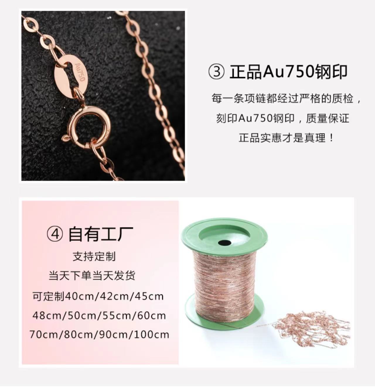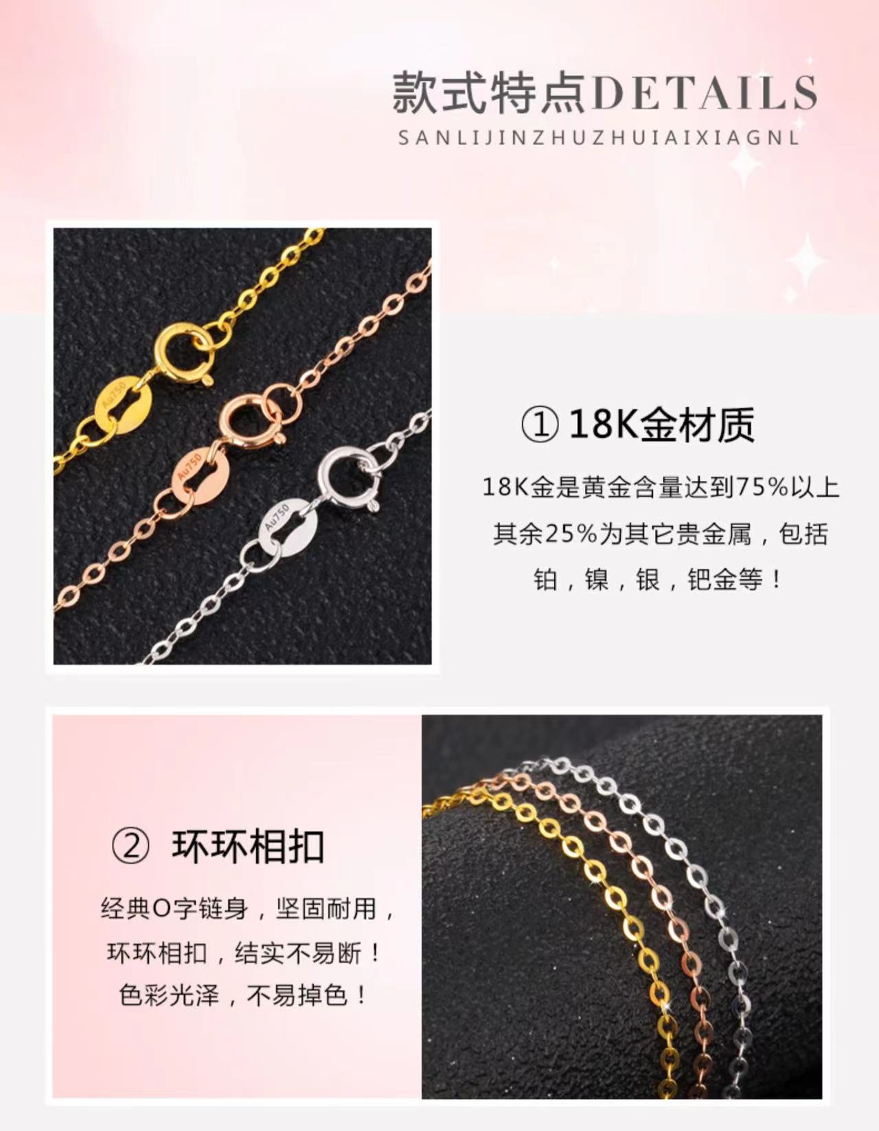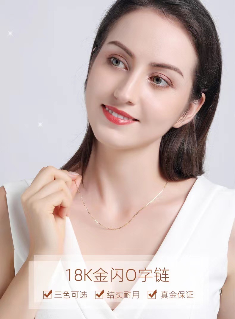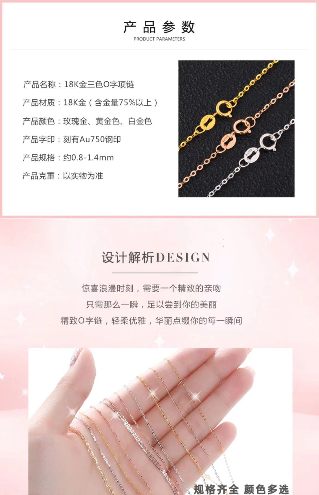 Золотая цепочка O-образной формы из 18-каратного золота Au750, регулируемая, гладкая, из розового золота 18 карат, блестящая, простая, универсальная, для женщин.