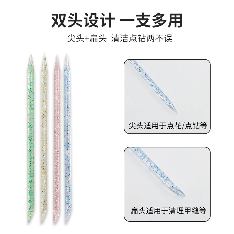 Оптовая продажа ногтей палочка с вспышкой ручка кристалл дрель палка Чистка лак для ногтей двойная голова мертвая кожа толкать инструмент для ногтей помощь