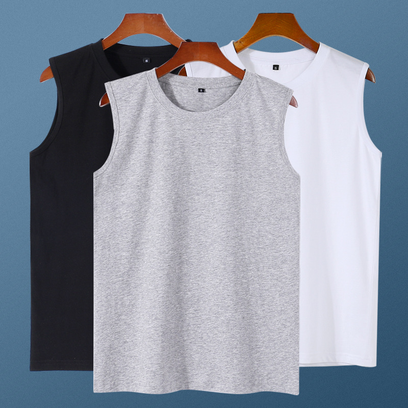 Мужская летняя однотонная хлопковая майка без рукавов для занятий спортом, фитнеса, может носиться как верхняя одежда, облегающий крой.