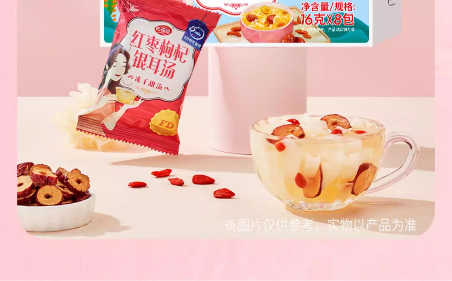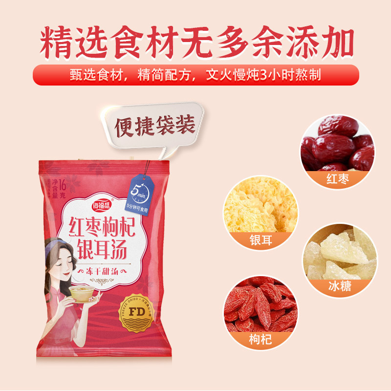 Суп из белых грибов Haifusheng 16г, сублимированный, готовый к употреблению, с красными финиками и ягодами годжи, в индивидуальных пакетах, быстрорастворимый суп для работы.
