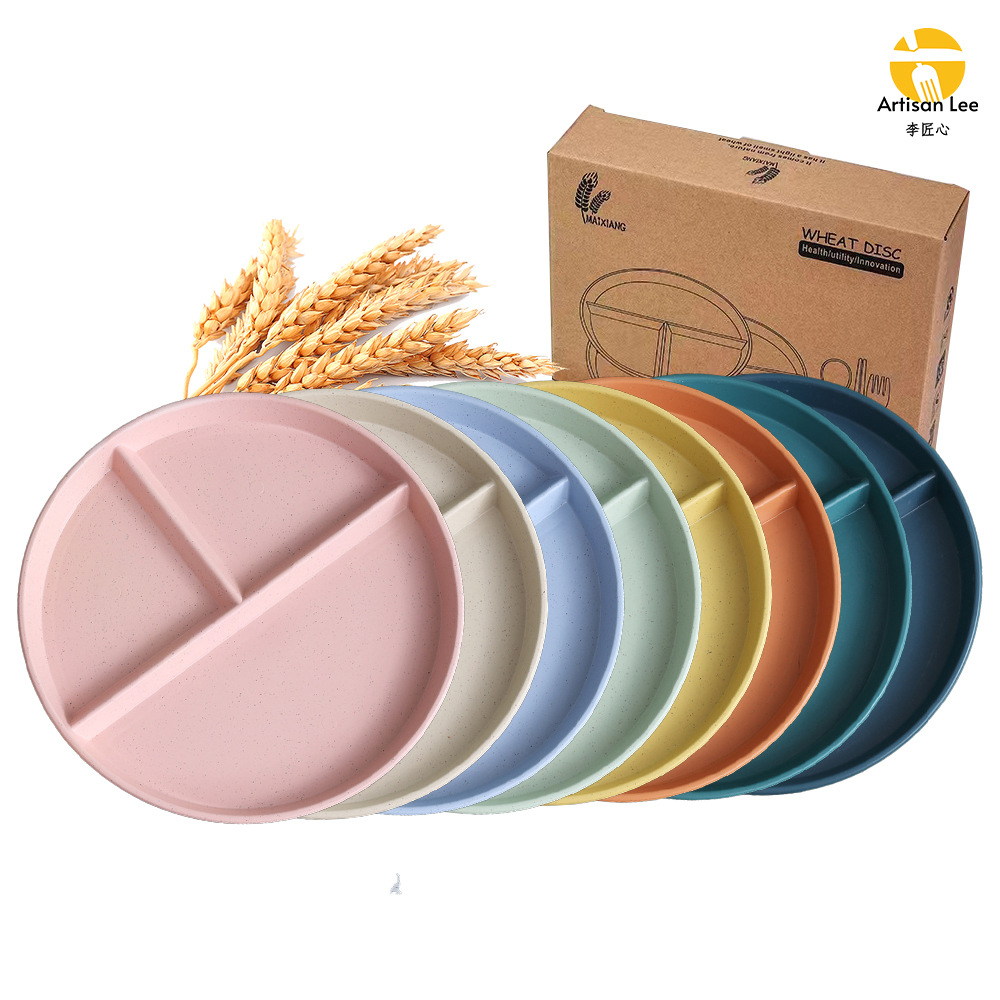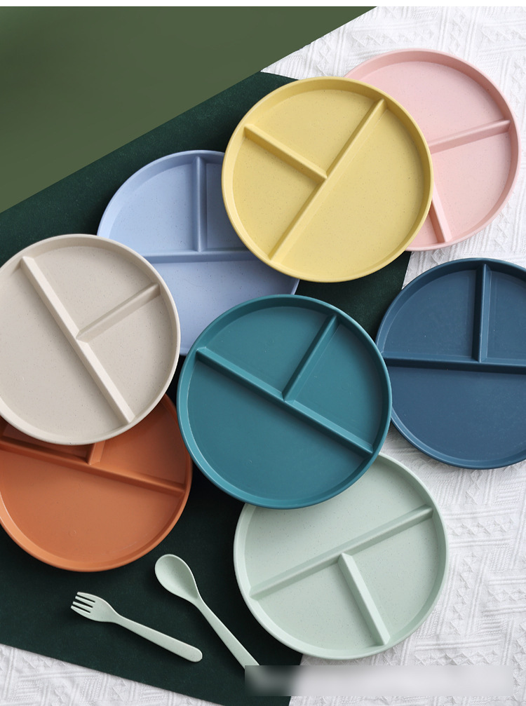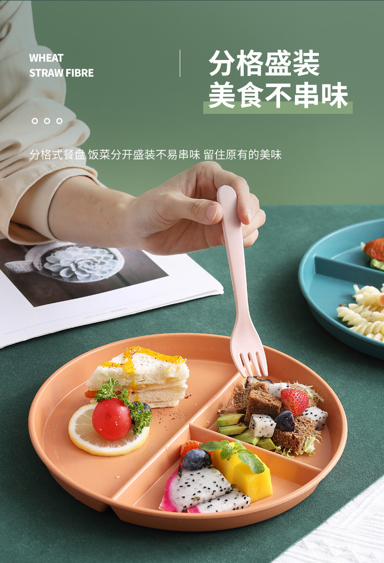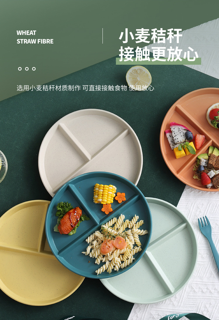 Трансграничная разделенная на секции обеденная тарелка из пшеничной соломки, красивая круглая тарелка, детская обеденная тарелка, домашняя тарелка для закусок и салатов, обеденная тарелка для снижения потребления жира.