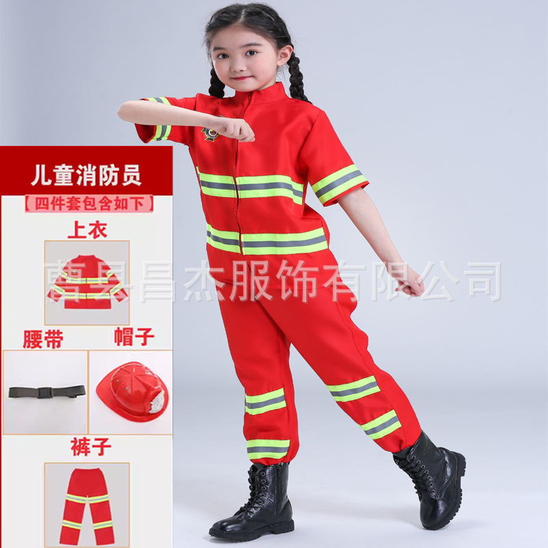 Оптовая продажа детского пожарного костюма для детского профессионального опыта ролевая одежда для маленьких детей пожарных с короткими рукавами