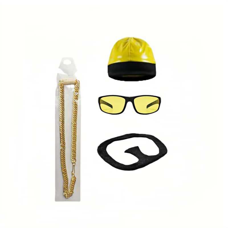 Желтая шапка + топ + брюки; Борода + ожерелье + очки; Борода + ожерелье + очки + желтая шляпа; Борода + ожерелье + очки + красная шляпа; Красная шапка + топ + брюки; Как показано на картинке, полный комплект.