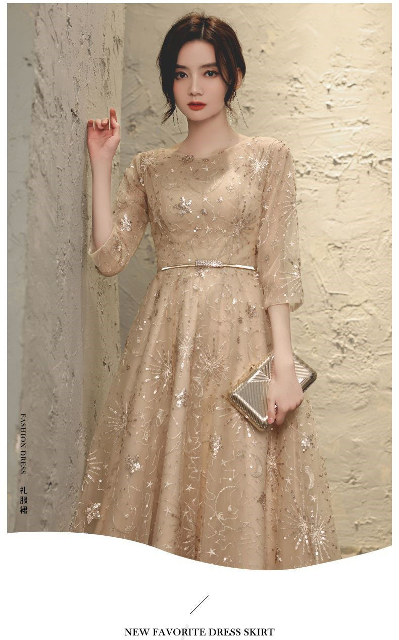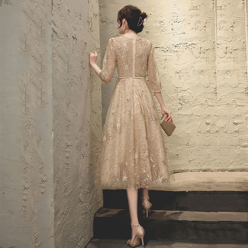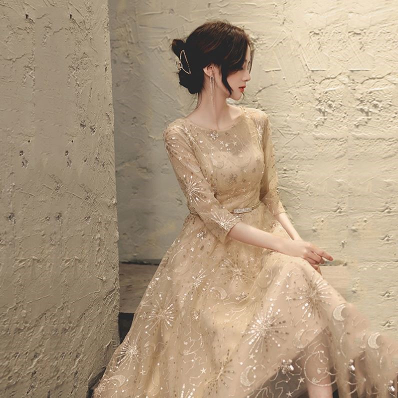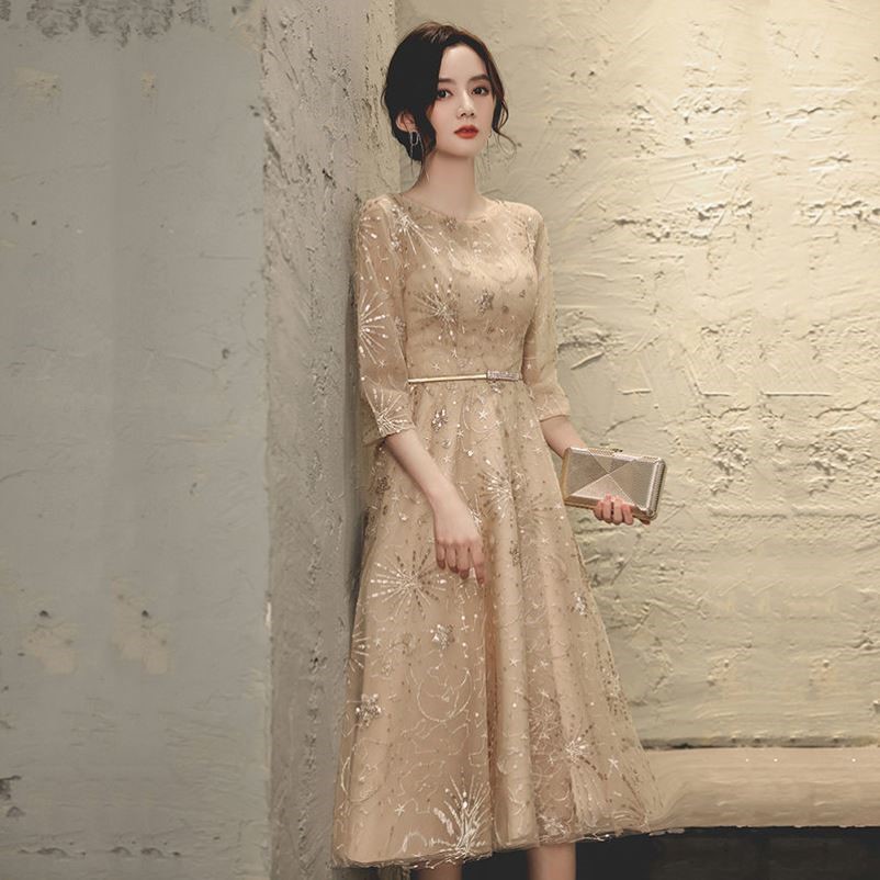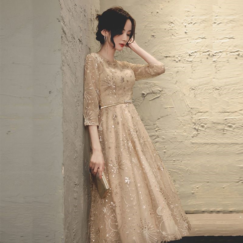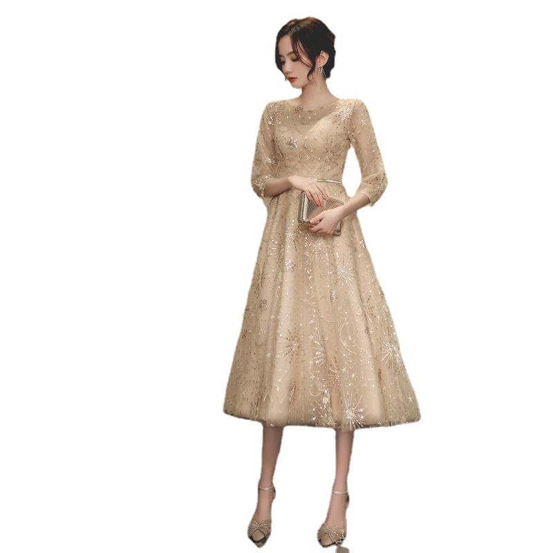 Вечернее платье цвета шампань для женщин 2025, новое, для взрослых, на церемонию, день рождения, элегантное платье для дам, можно носить и в повседневной жизни