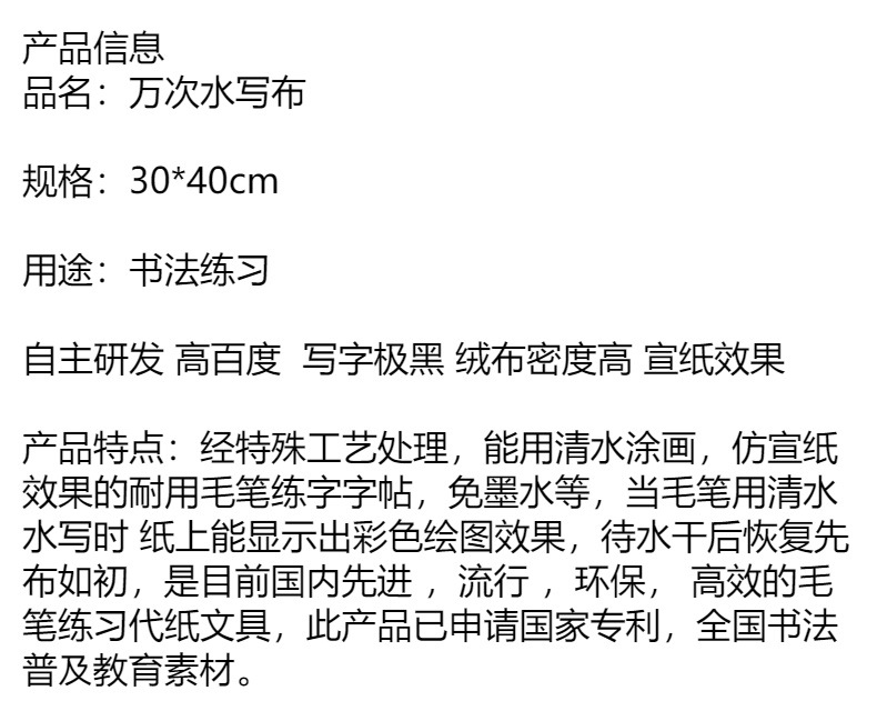 Знаменитая ткань для письма в десять тысяч раз небольшого размера утолщенная оксфордская водная ткань для письма подходит для студентов, начинающих писать в воде Практика каллиграфии Имитация MiG