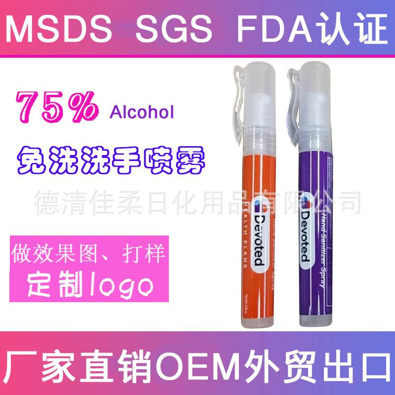 Трансграничный подарок fda Factory Direct Американский 0,3 унции 10 мл Портативный спрей-ручка без воды дезинфицирующее средство для рук спрей