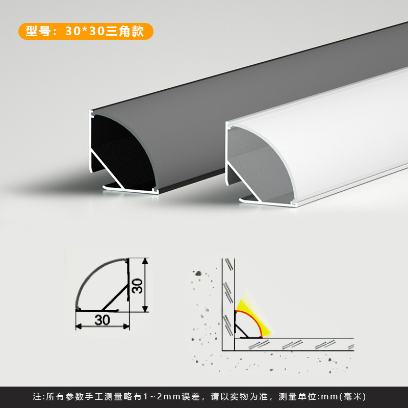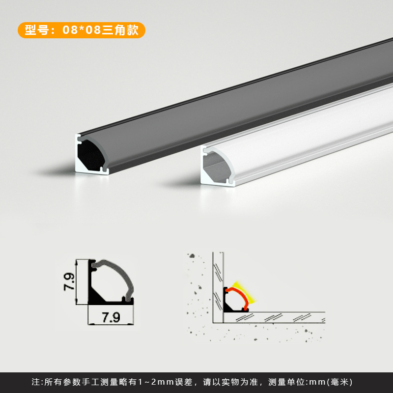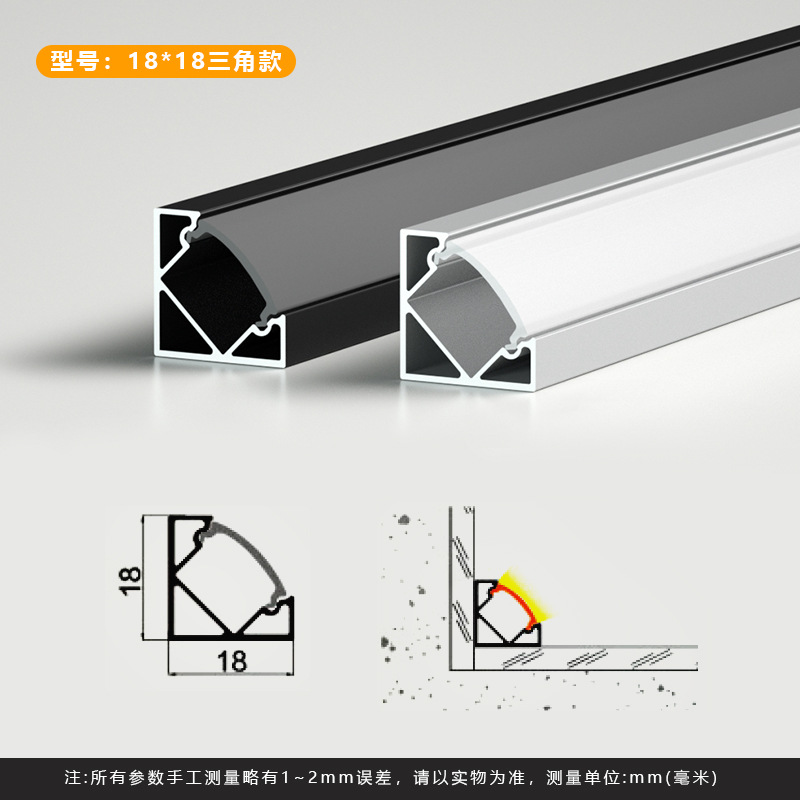 Светодиодный треугольный V-образный угловой светильник с углом 45 градусов, без пазов, линейный, алюминиевый, боковой источник света, высокая яркость