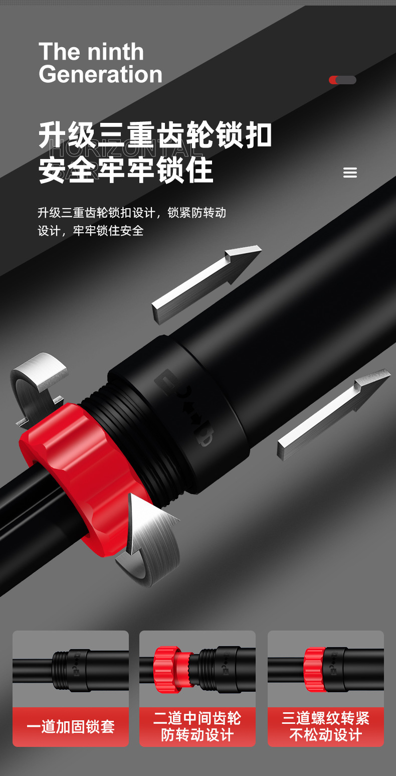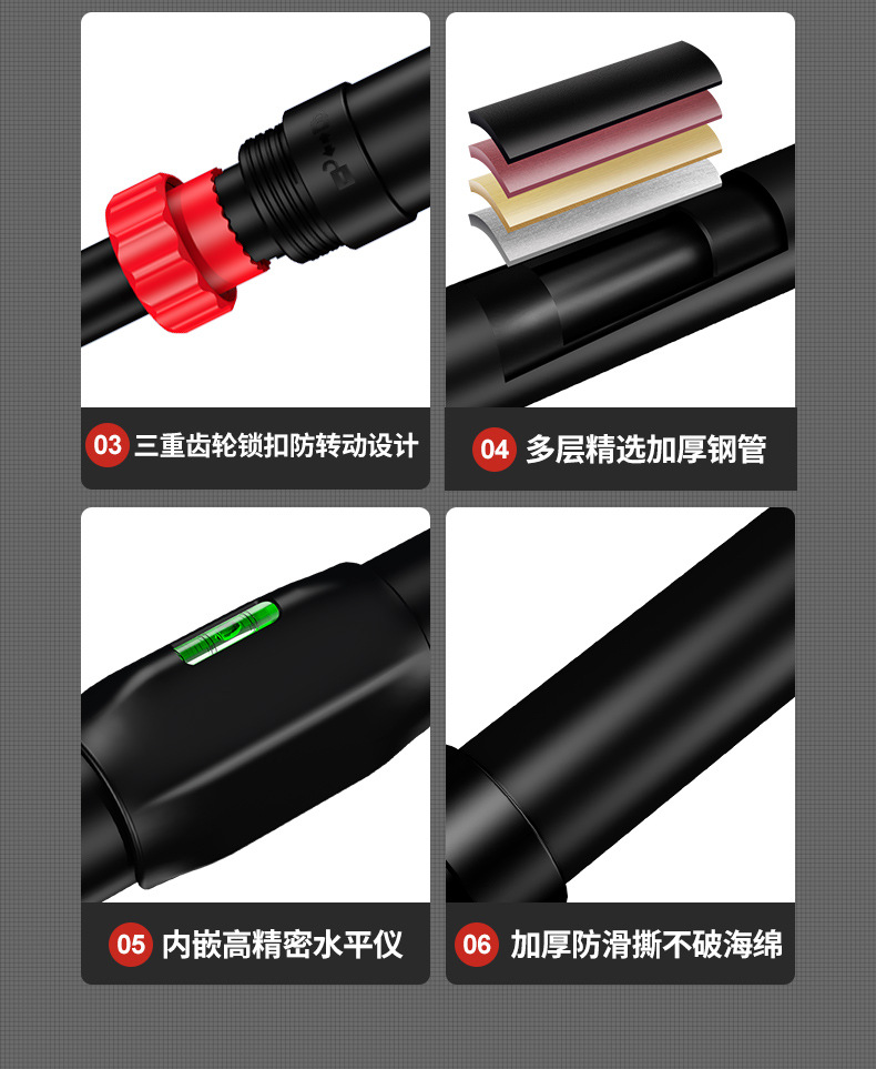Автоматический удлинитель 9-го поколения с защитой от падения 72-95 см + измеритель уровня; Автоматический удлинитель 9-го поколения с защитой от падения 93-120 см + измеритель уровня; Автоматический удлинитель 9-го поколения с защитой от падения 115-140 см + измеритель уровня; Автоматический удлинитель 9-го поколения с защитой от падения 72-95 см + уровень + подъемное кольцо; Автоматический удлинитель 9-го поколения с защитой от падения 93-120 см + уровень + подъемное кольцо; Автоматический удлинитель 9-го поколения с защитой от падения 115-140 см + уровень + подъемное кольцо