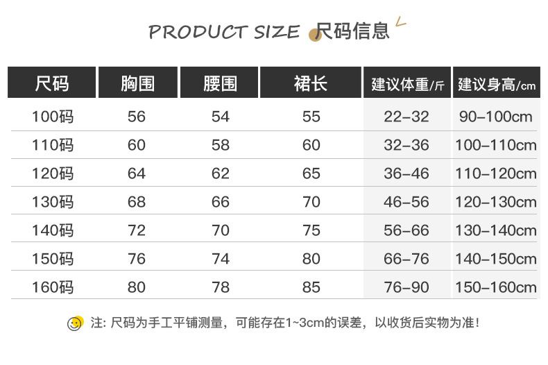 100cm(4Y); 110cm(5Y); 120cm(6Y); 130cm(7Y); 140cm(8Y); 150cm(9Y)