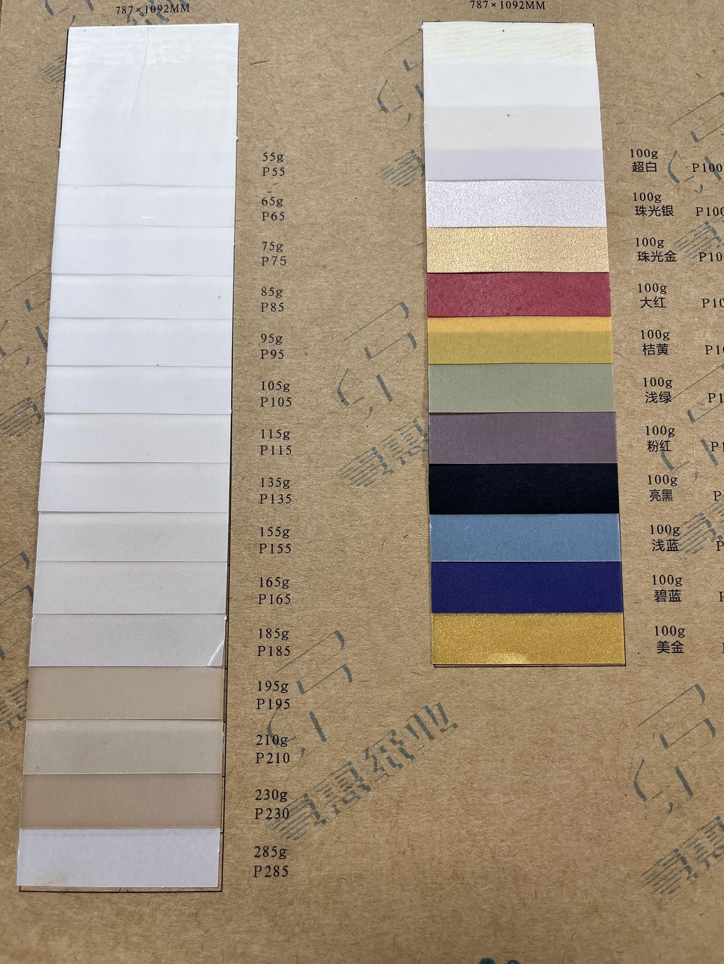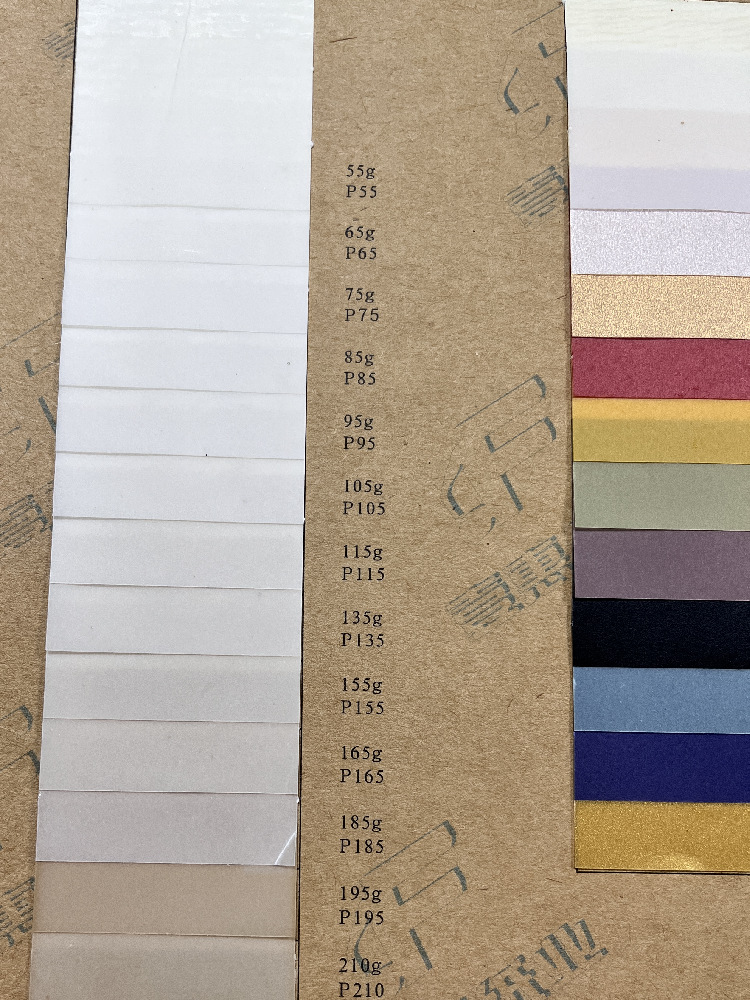 100 г цветной масляной бумаги; 55 г; 65 г; 75 г; 85 г; 95g; 105 г; 115 г; 135 г; 155 г; 165 г; 185 г; 195g; 210 г; 230 г; 285 г