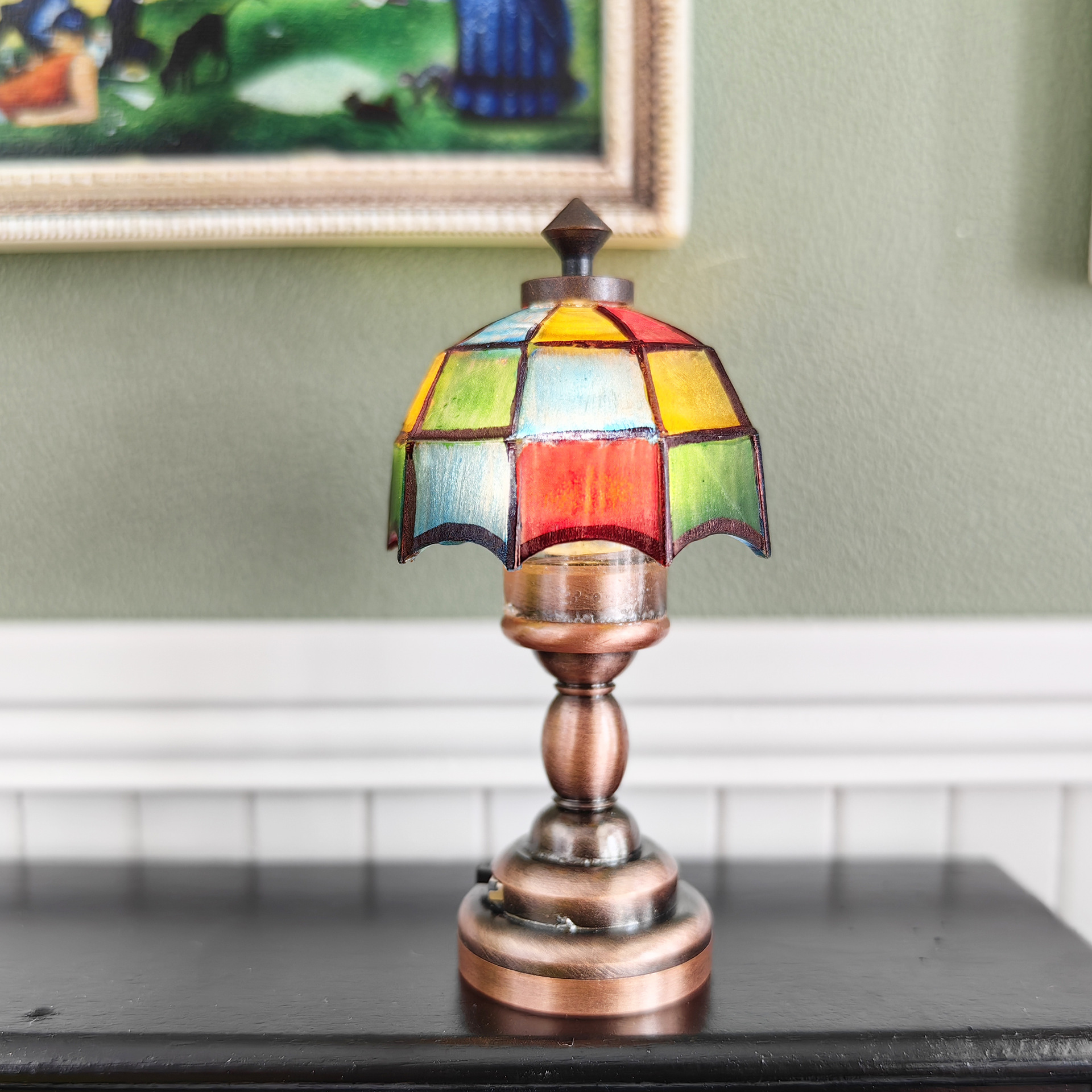 Кукольный домик мини миниатюрная лампа Тиффани настольная лампа модель цветная глазурованная лампа 12 очков аксессуар dollhouse
