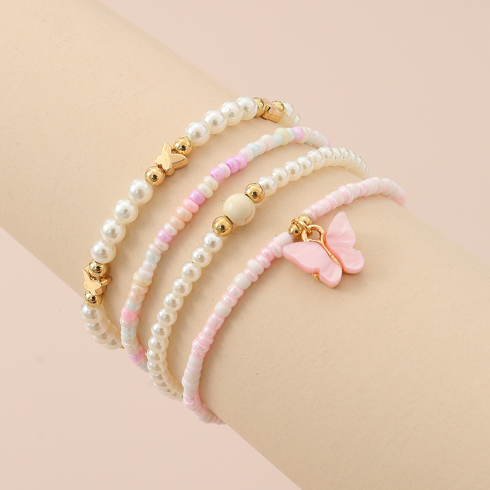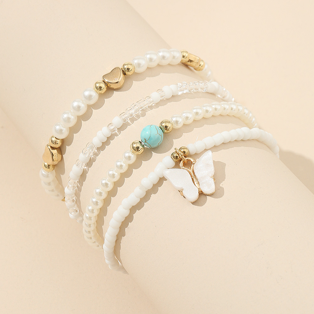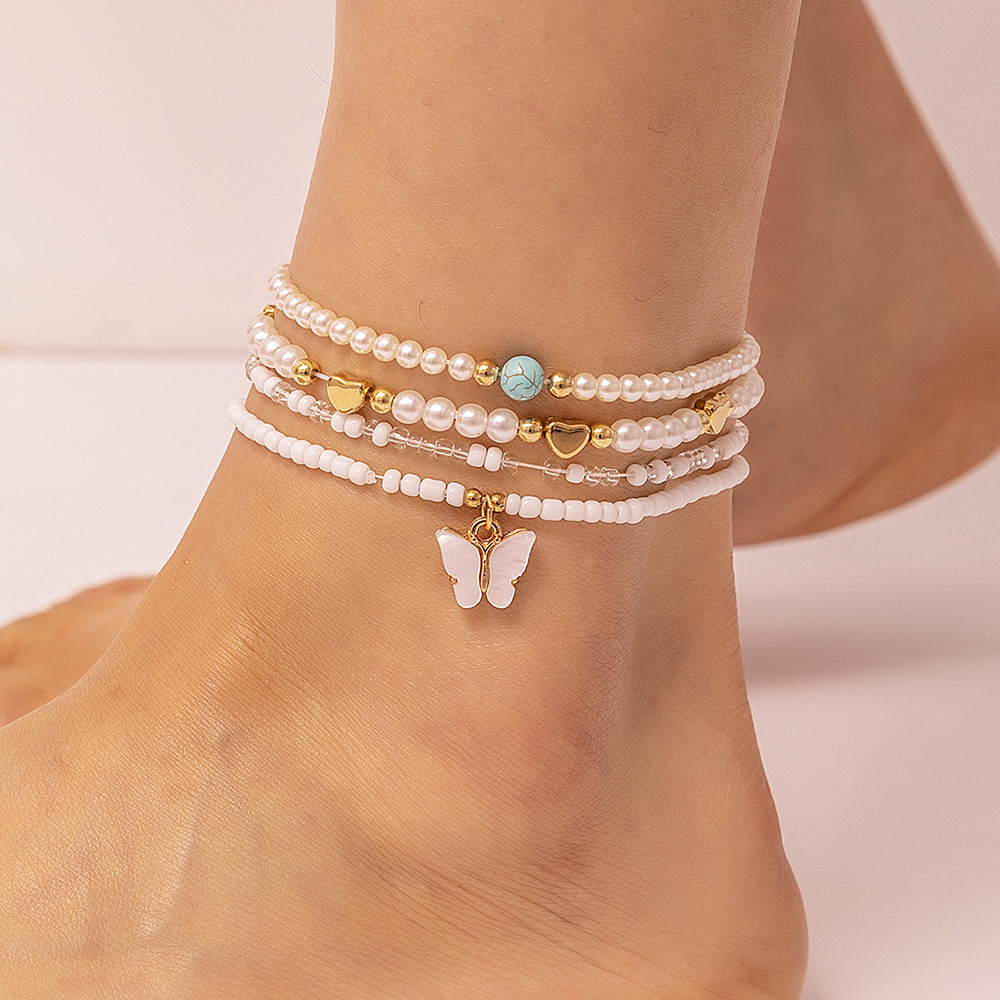 Трансграничный европейский и американский детский новый ножной браслет, летний кулон в виде бабочки, Простой Модный жемчужный ножной браслет для девочек, набор из четырех предметов