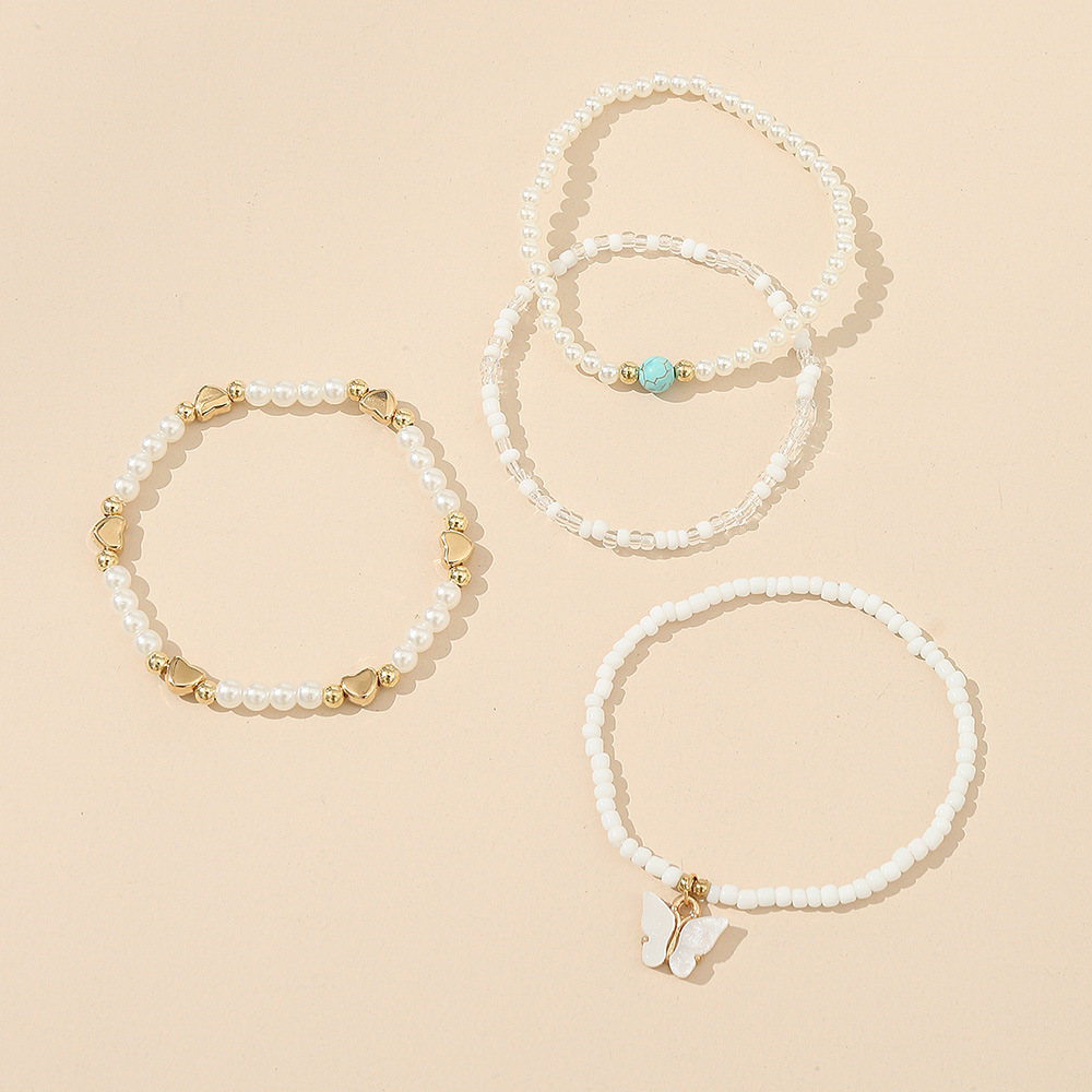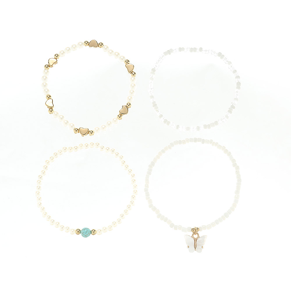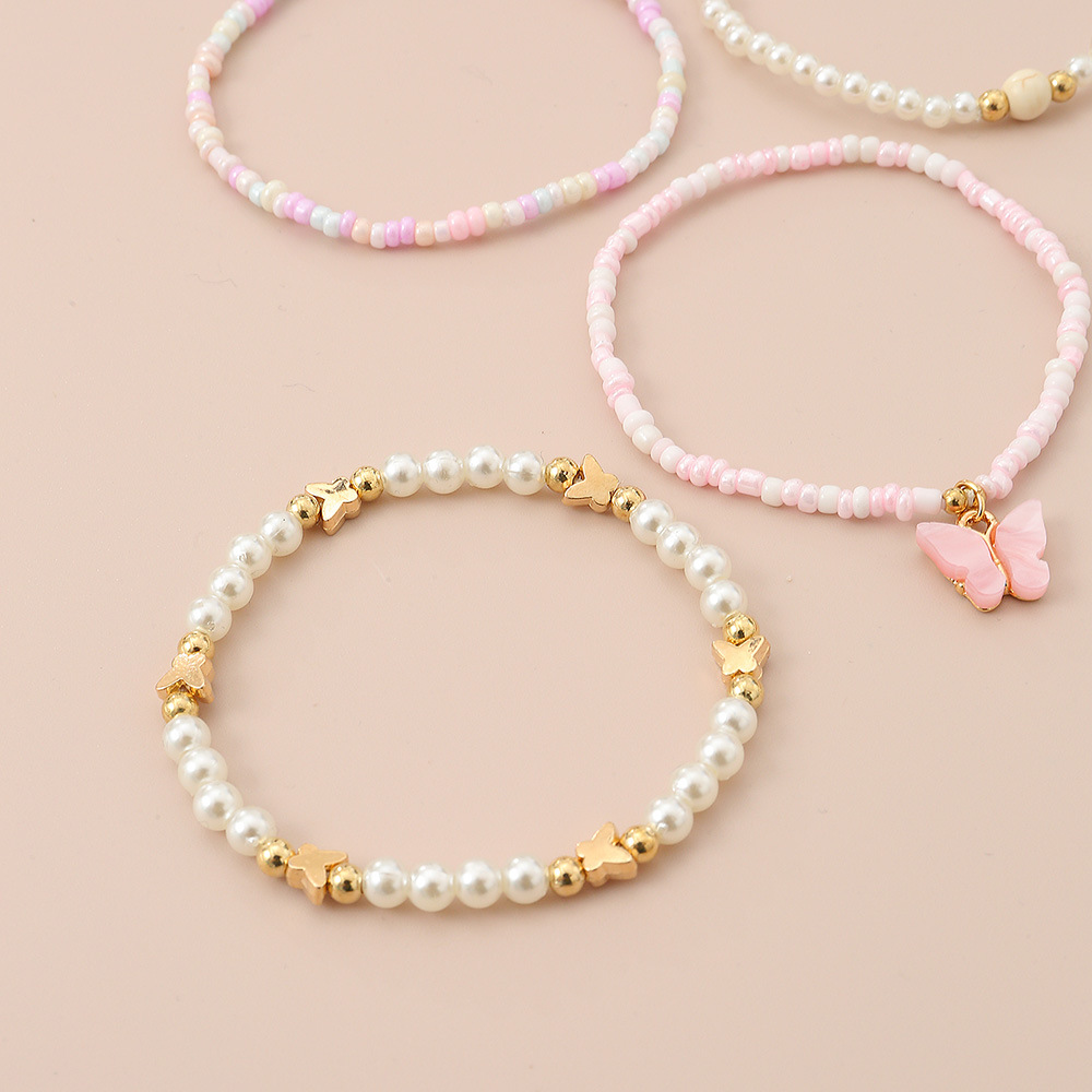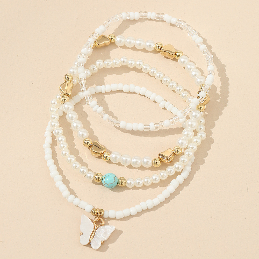 Трансграничный европейский и американский детский новый ножной браслет, летний кулон в виде бабочки, Простой Модный жемчужный ножной браслет для девочек, набор из четырех предметов