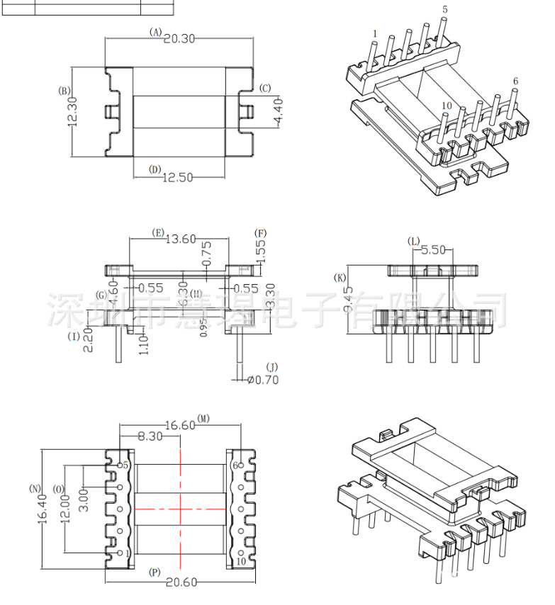 Высокочастотный трансформатор EE17 с расширенным коротким каркасом по вертикали 5 + 5 контактов HXB-EI1700 расстояние между рядами 16,6 мм