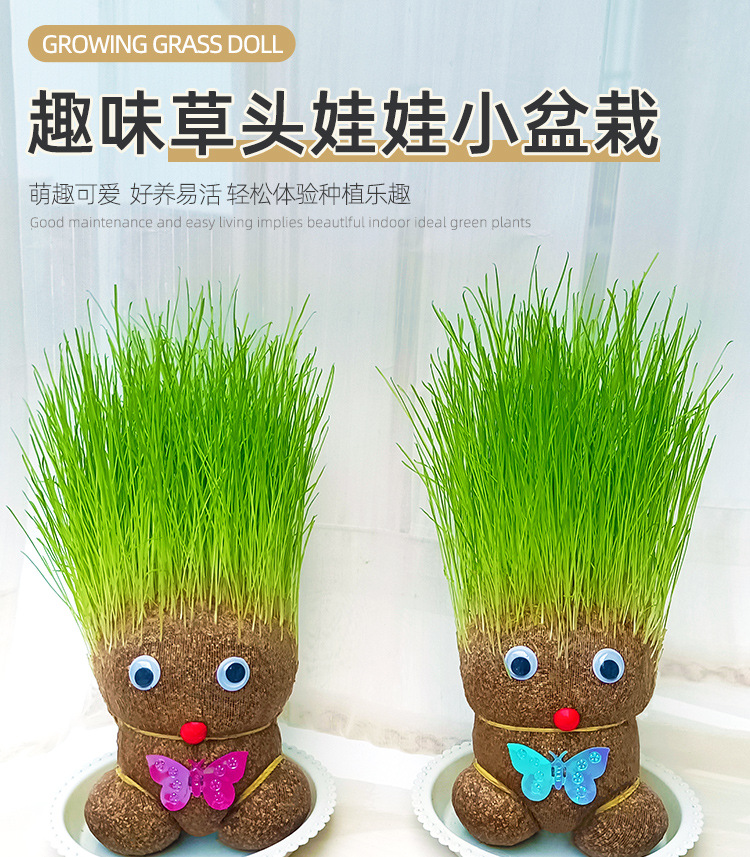 Кукла с головой травы, оптовая продажа, длинная кукла с травой, цветение куклы, дети, маленькие горшечные зеленые растения, гидропонные растения, два юаня, магазин подарков