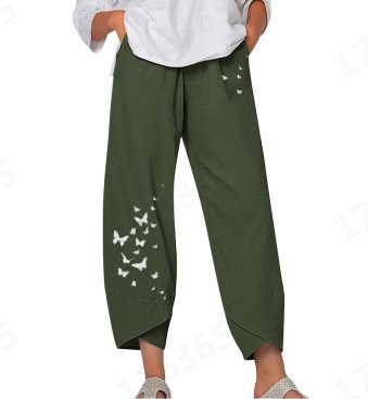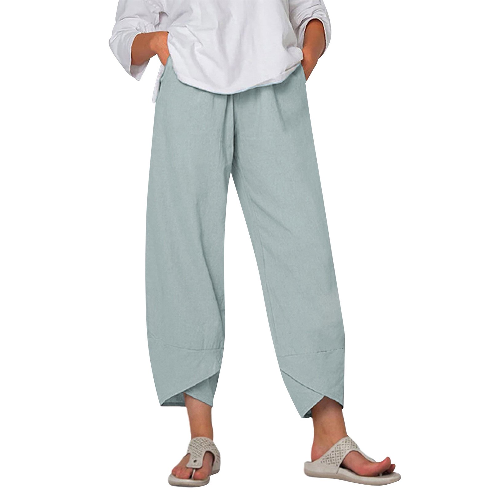 Трансграничные женские новые европейские и американские однотонные Свободные повседневные укороченные брюки больших размеров с простыми прострочками и карманами