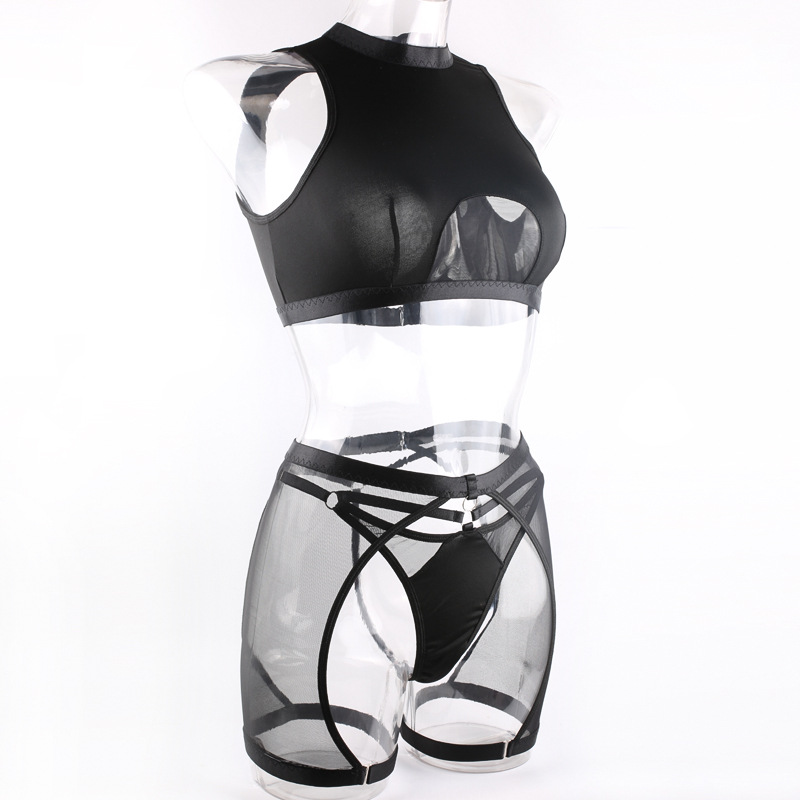 Европейский и американский стиль трансграничной внешней торговли новый черный без стального кольца нижнее белье модный перспективный сексуальный женский бюстгальтер костюм из трех частей комплект