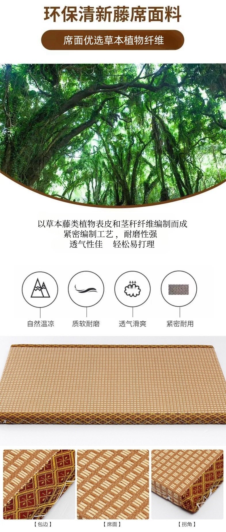 Татами в японском стиле Кокосовый коричневый коврик Татами Чайная комната Проживание в семье напольный коврик Водонепроницаемый Электрический нагревательный ступенчатый рисовый джутовый коврик