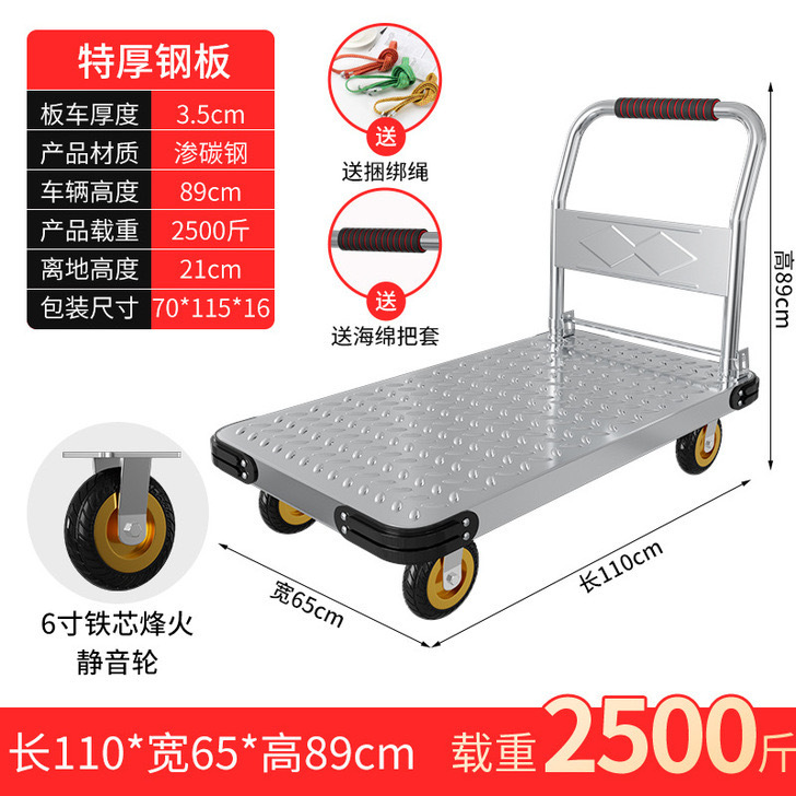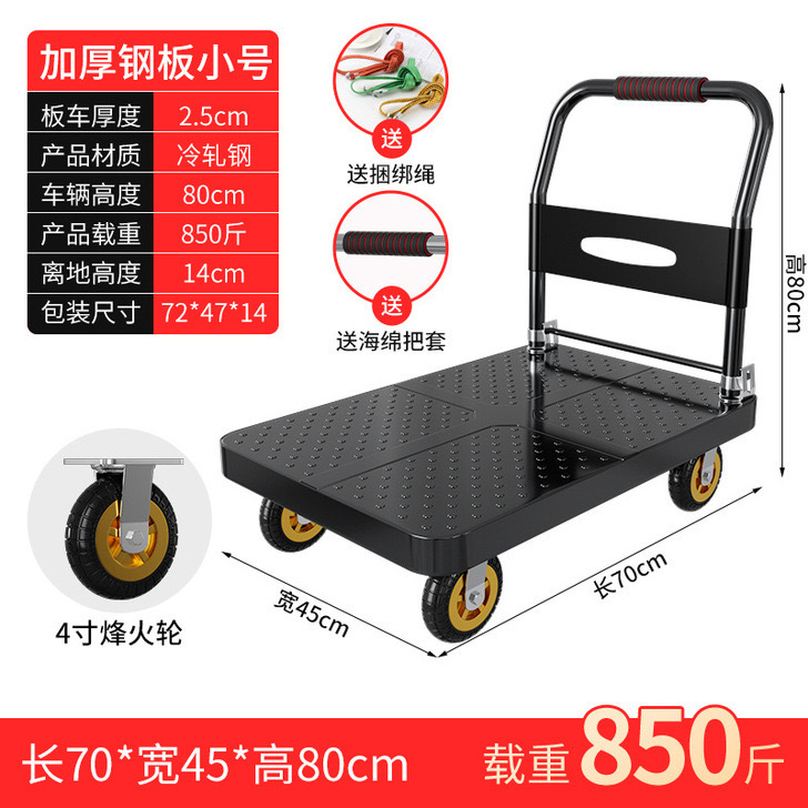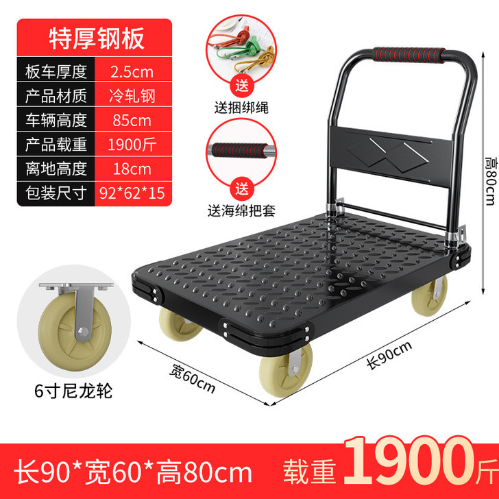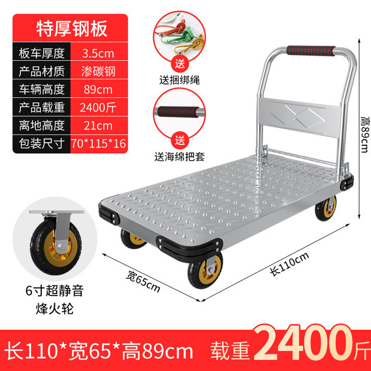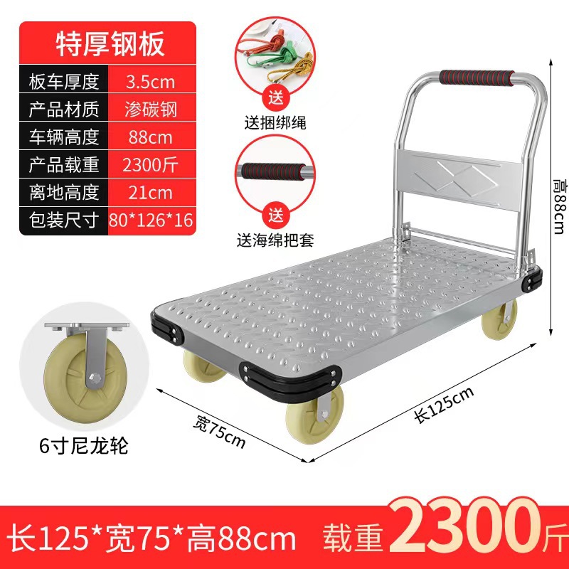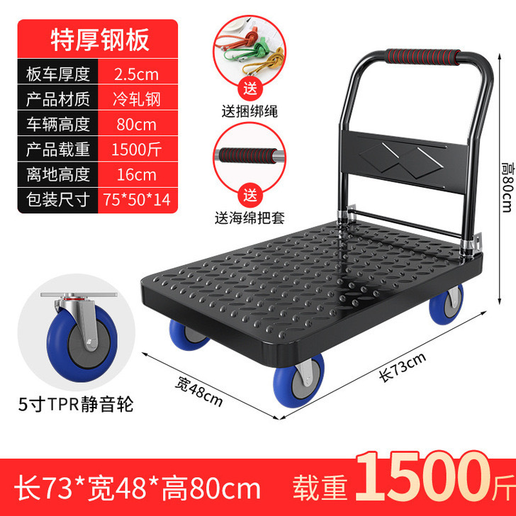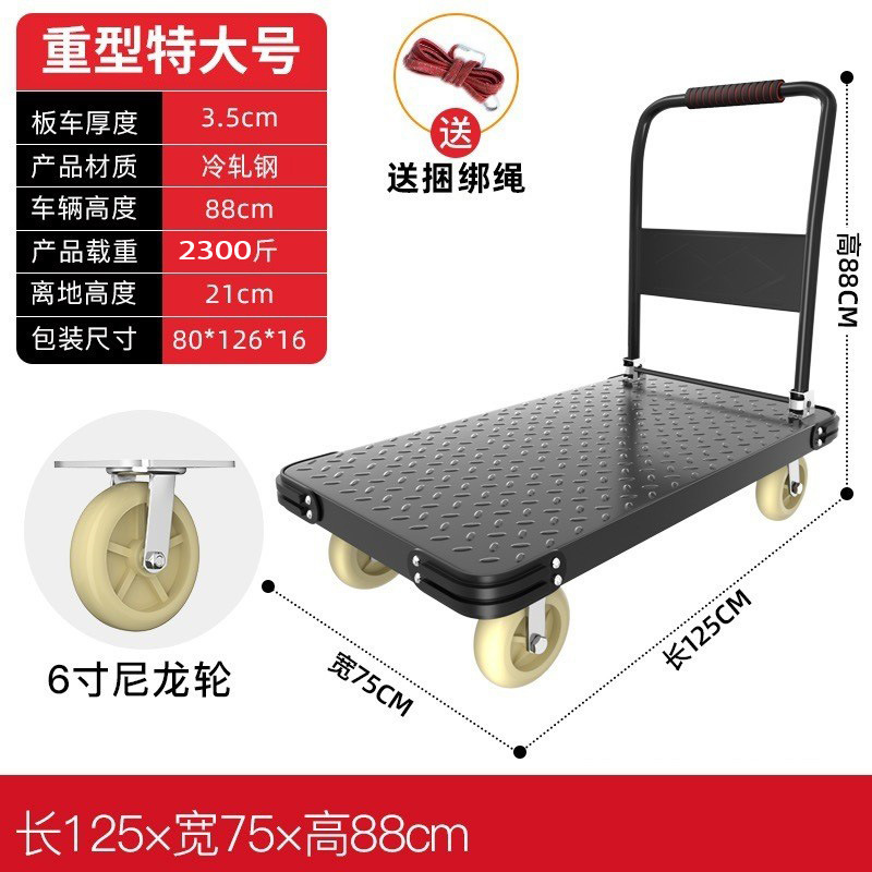 Тележка маленькая тележка плоская тележка бесшумная складная тележка колесо большая тележка утолщенная железная стальная пластина прицеп
