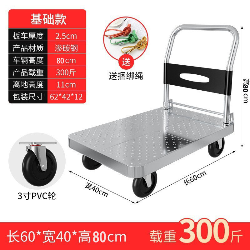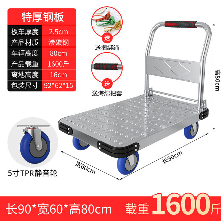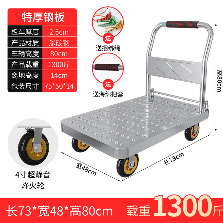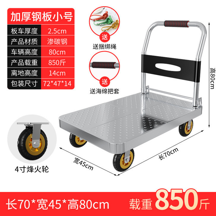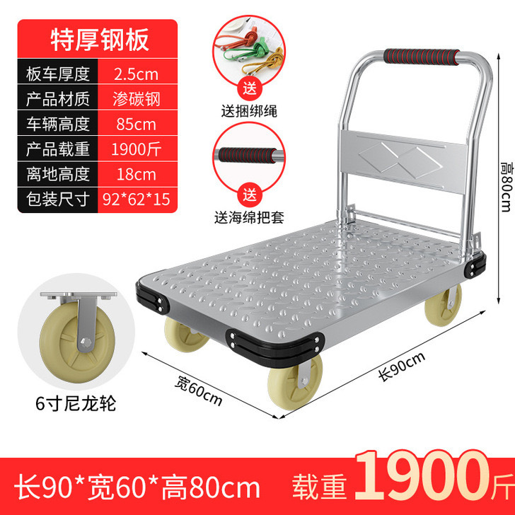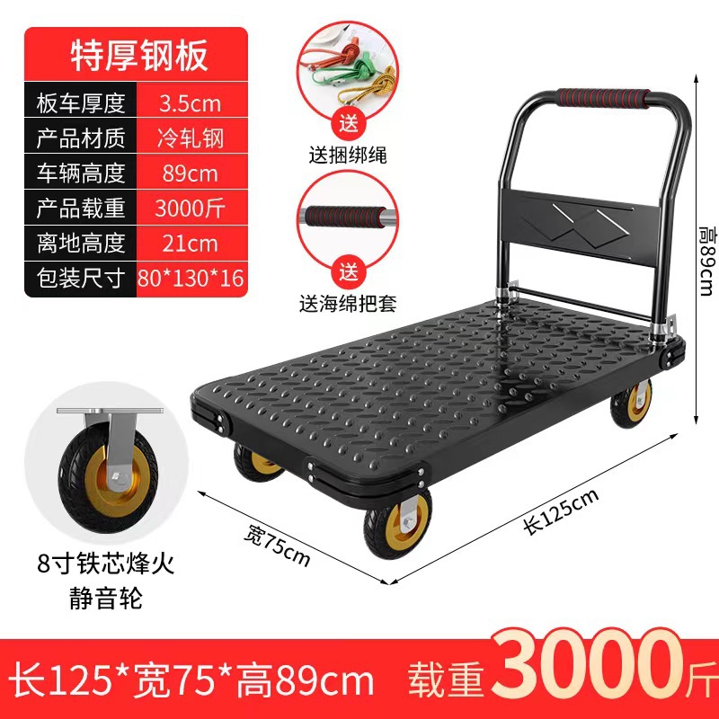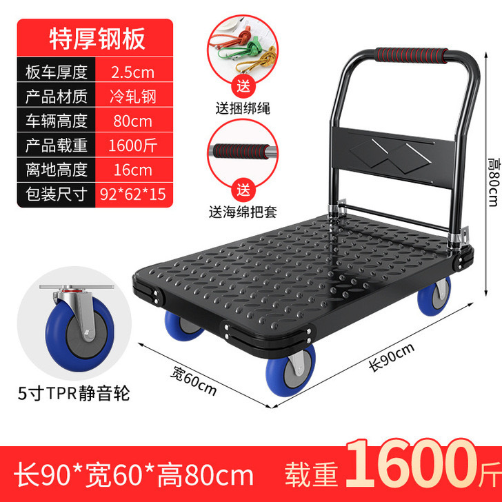 Тележка маленькая тележка плоская тележка бесшумная складная тележка колесо большая тележка утолщенная железная стальная пластина прицеп
