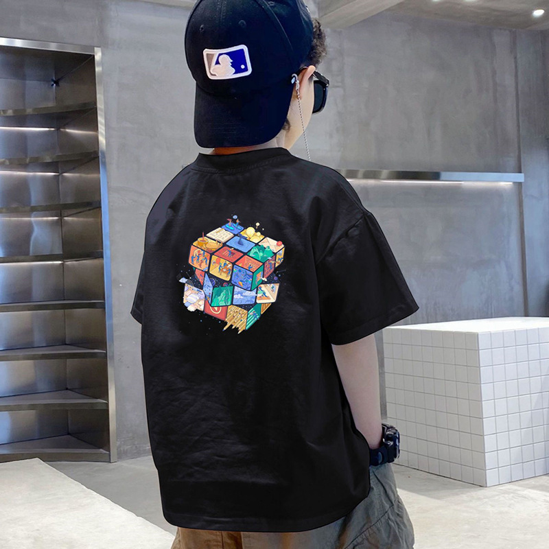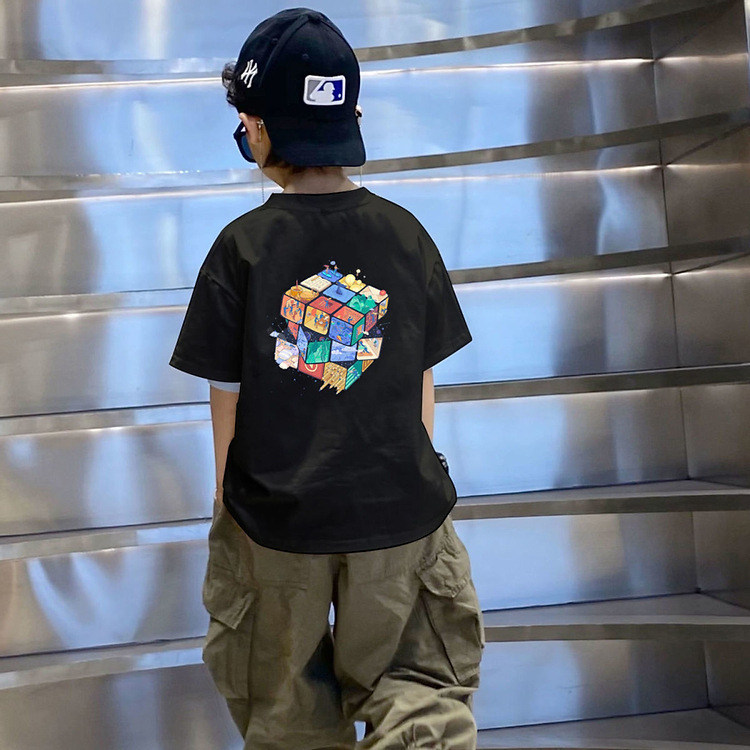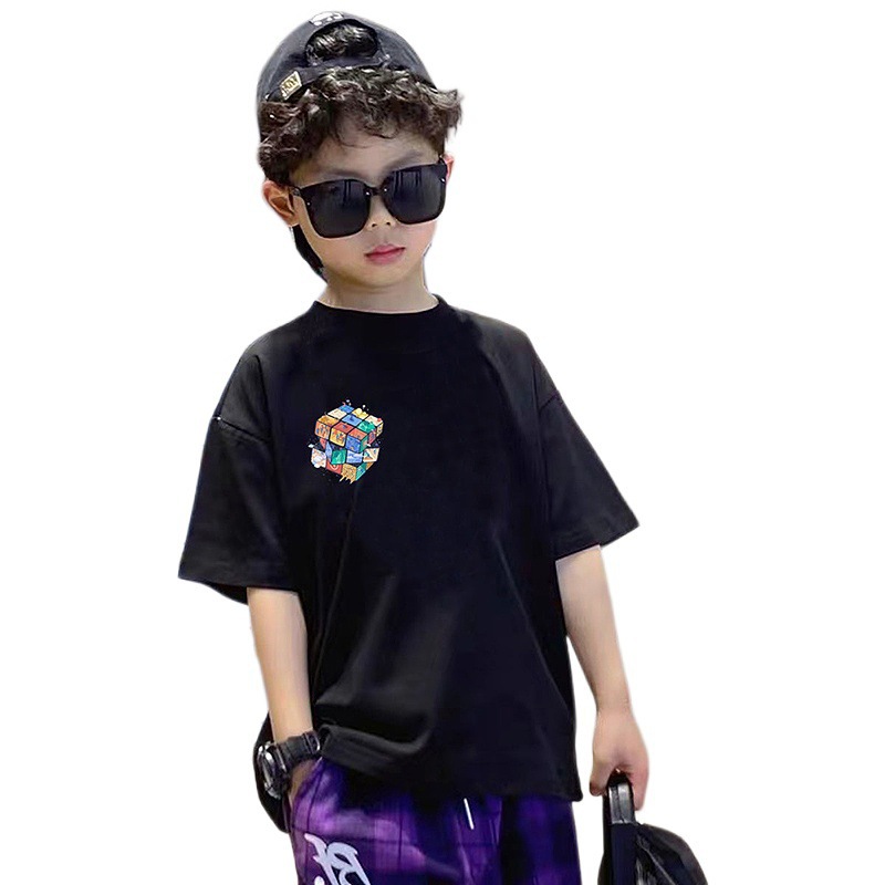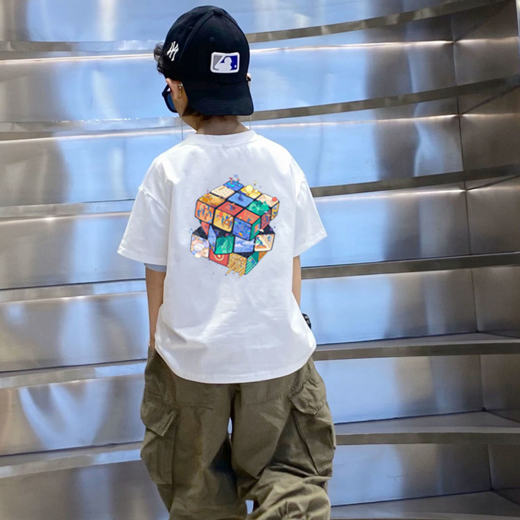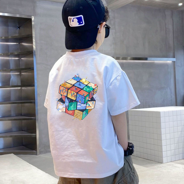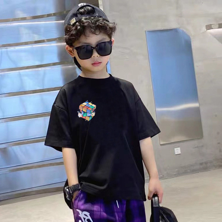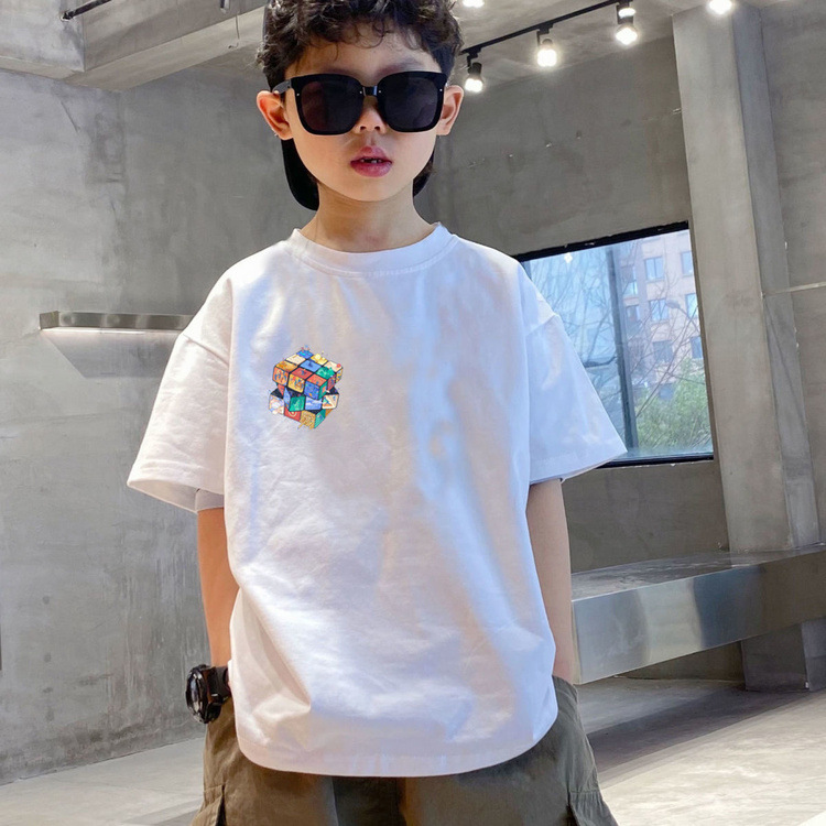 Летняя футболка для мальчиков с короткими рукавами, новинка 2023 года, модный детский дышащий Тонкий Универсальный Свободный Топ с рукавами до локтя