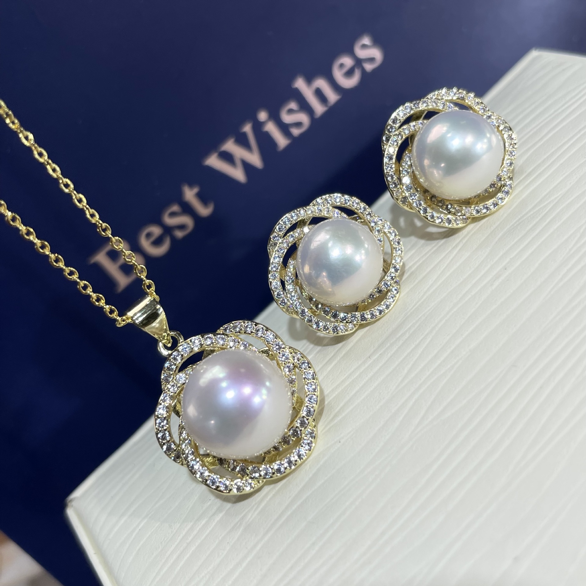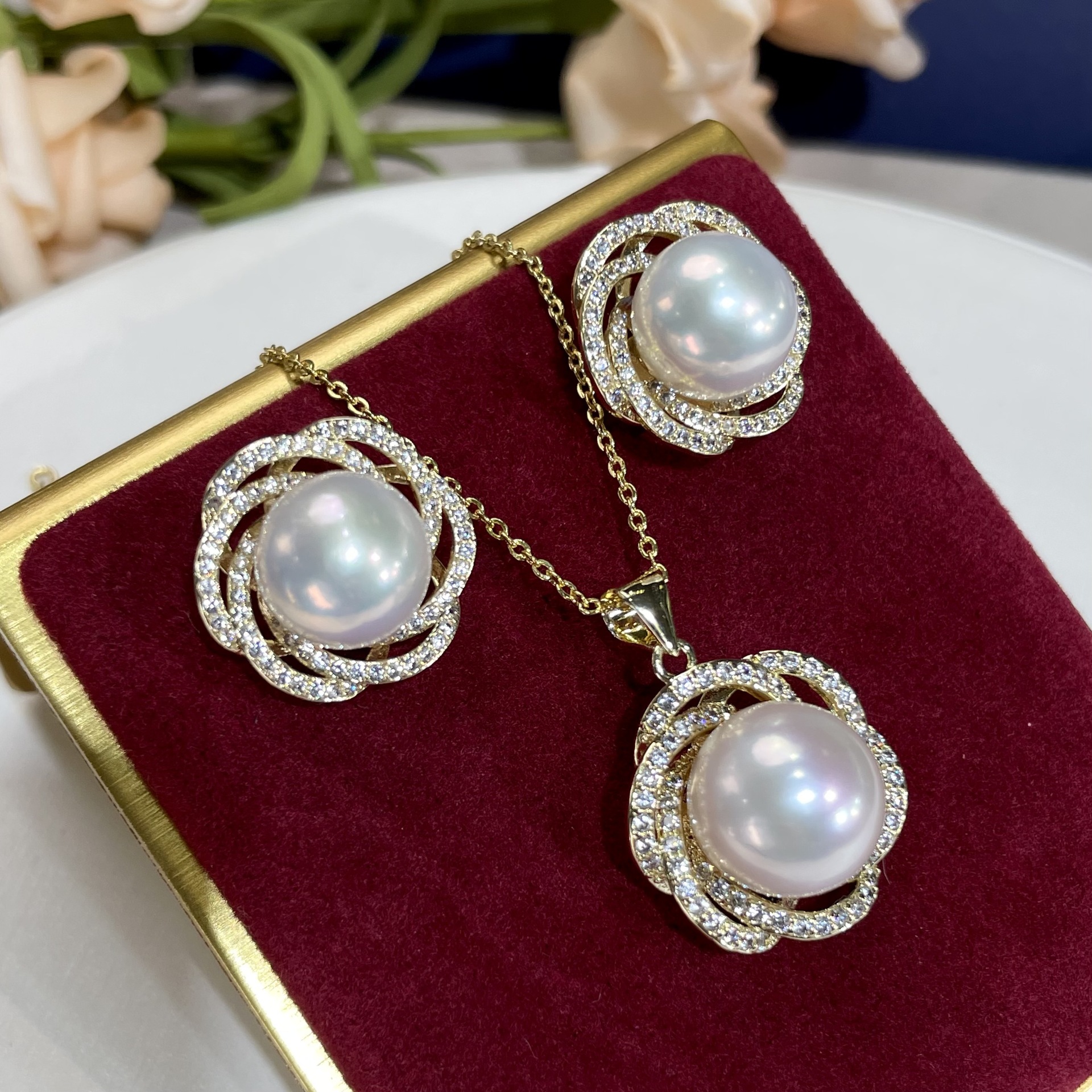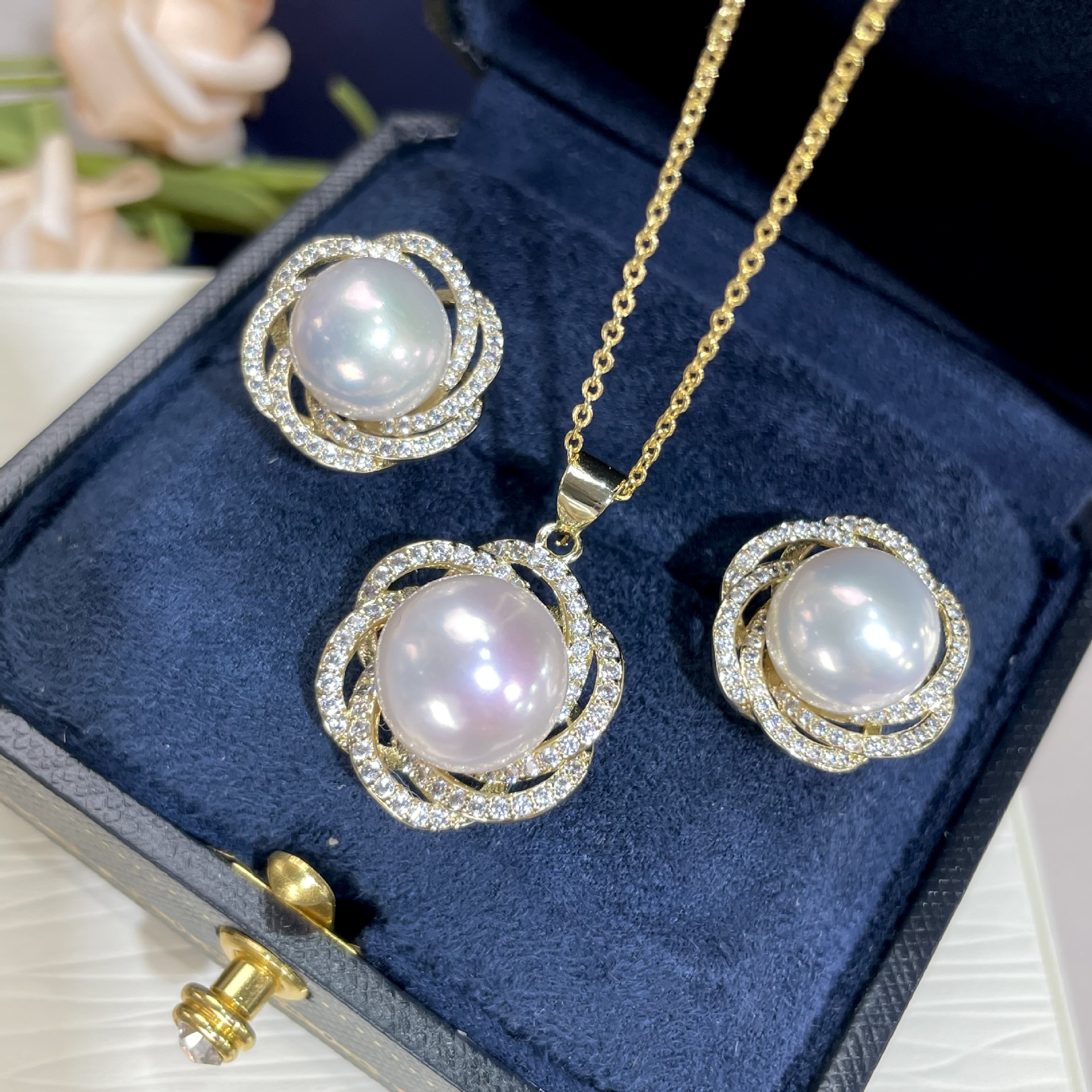 Пресноводное Жемчужное ожерелье серьги из двух частей ожерелье цепи ниша свет роскошный дизайн моды кулон костюм производителей оптом