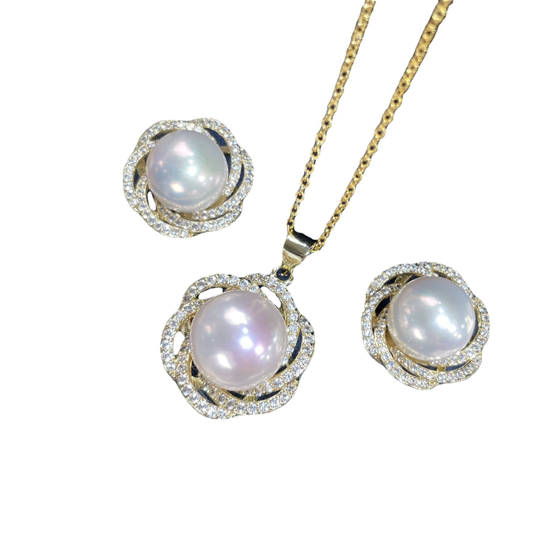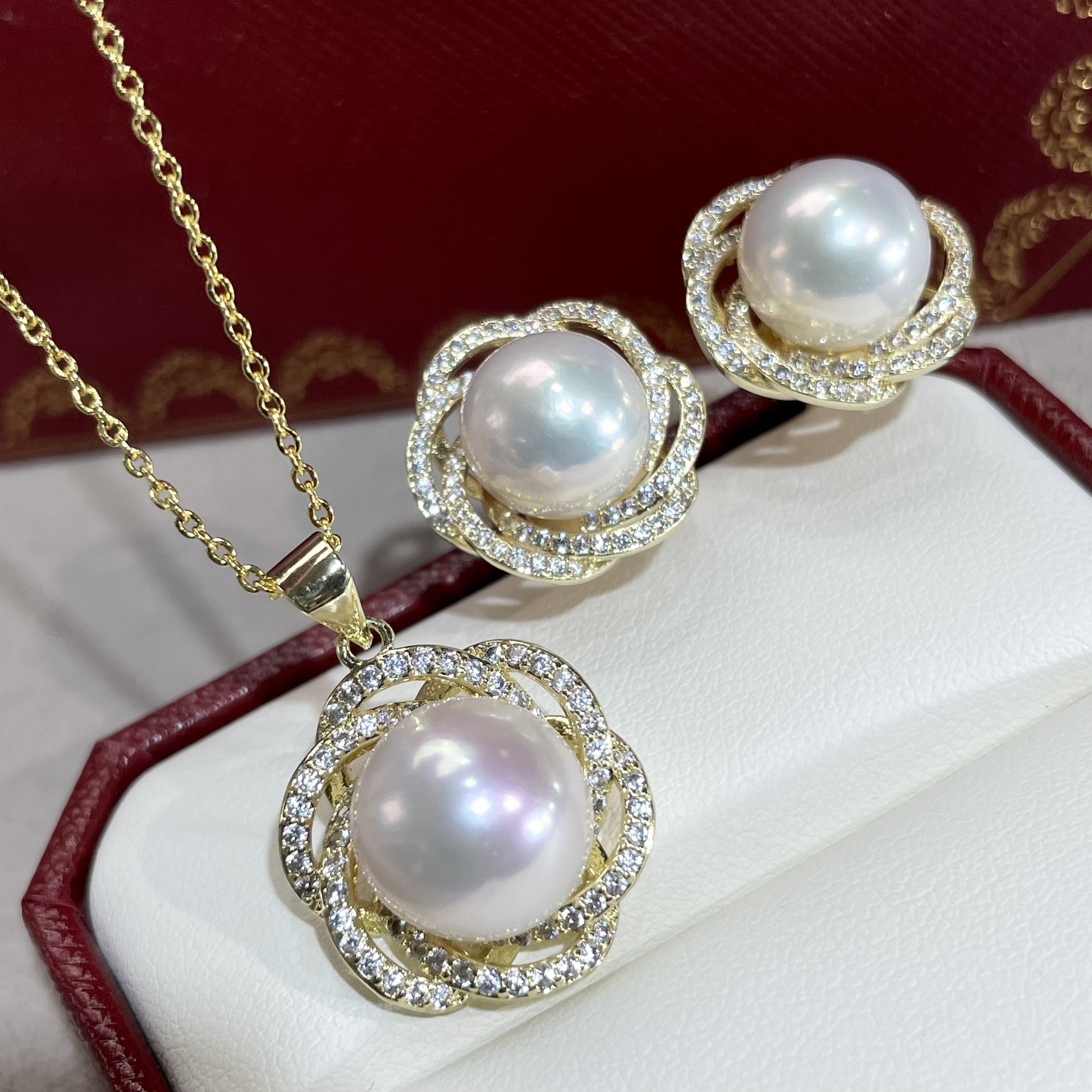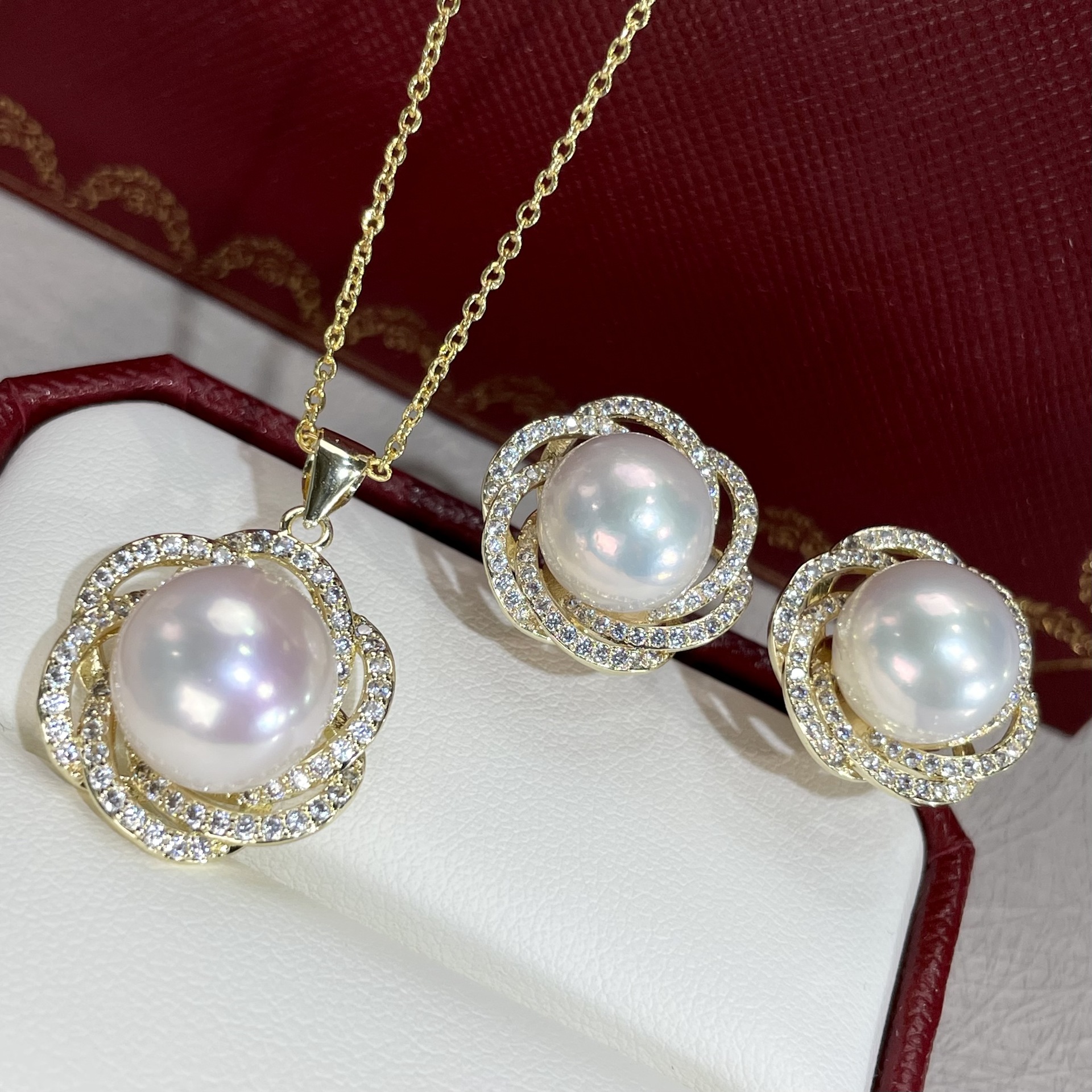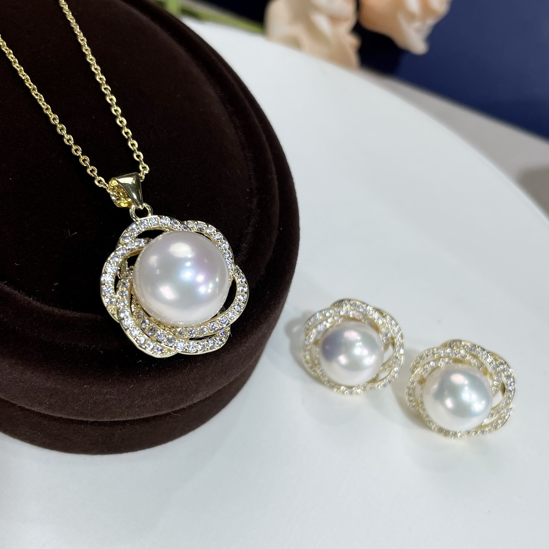 Пресноводное Жемчужное ожерелье серьги из двух частей ожерелье цепи ниша свет роскошный дизайн моды кулон костюм производителей оптом