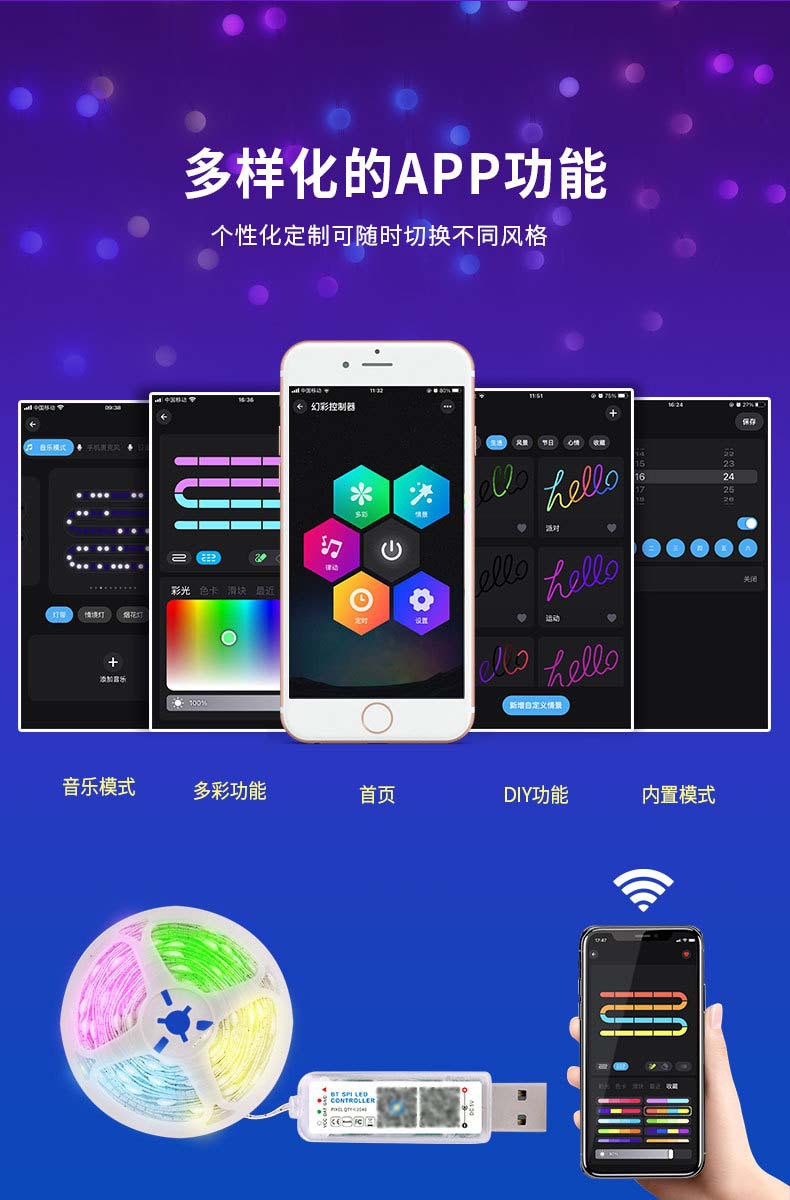 Контроллер Bluetooth Symphony Музыкальный режим Многосценный режим Кожаный шнур Контроллер освещения 5 В