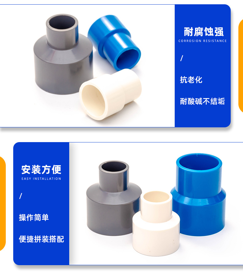 ПВХ Размер головки Белый переменный диаметр прямого уменьшения соединения водоснабжения трубы фитинги преобразования прямой-через клей пластиковые трубы фитинги