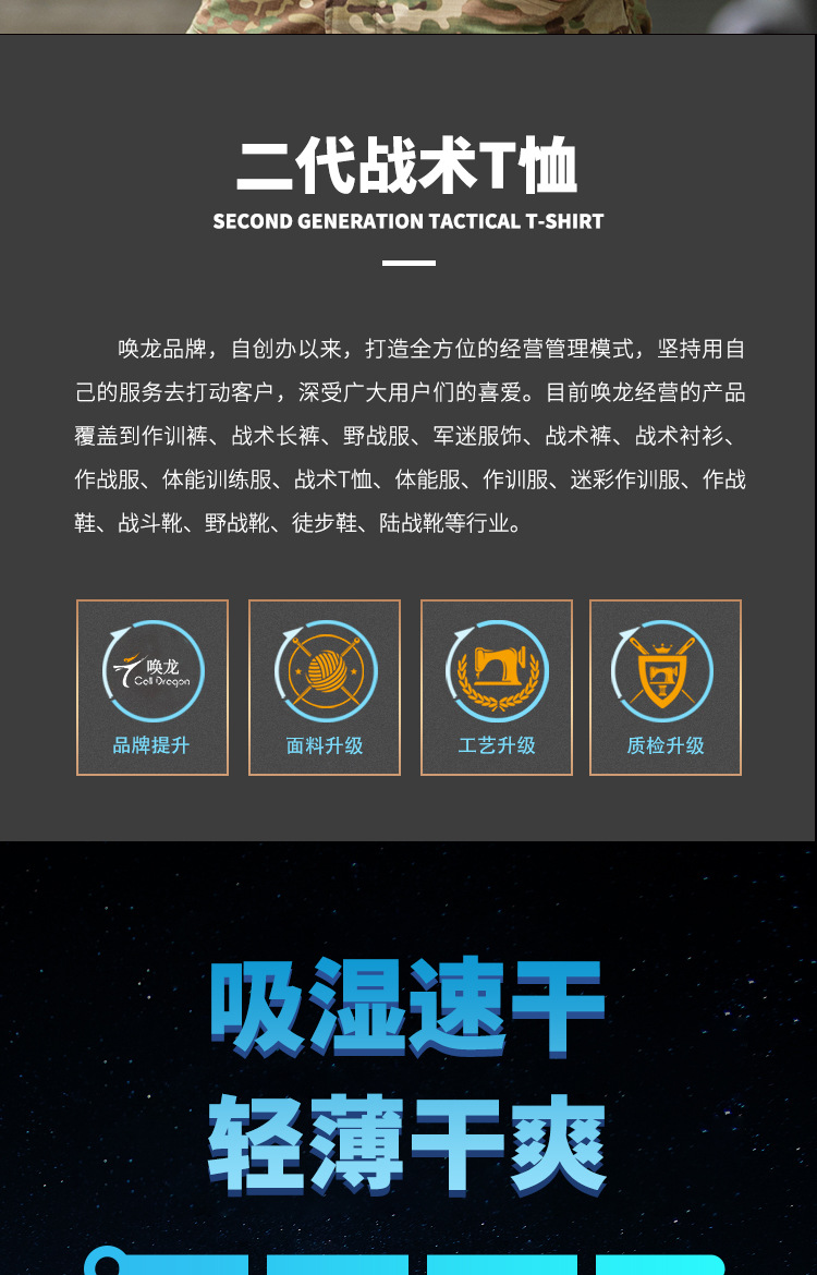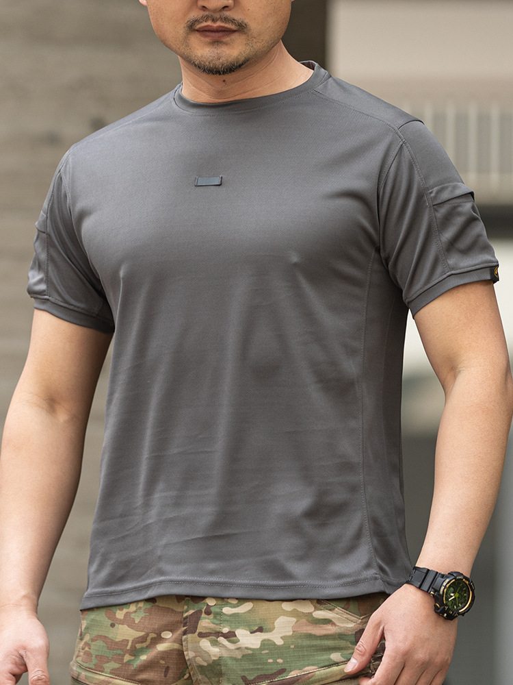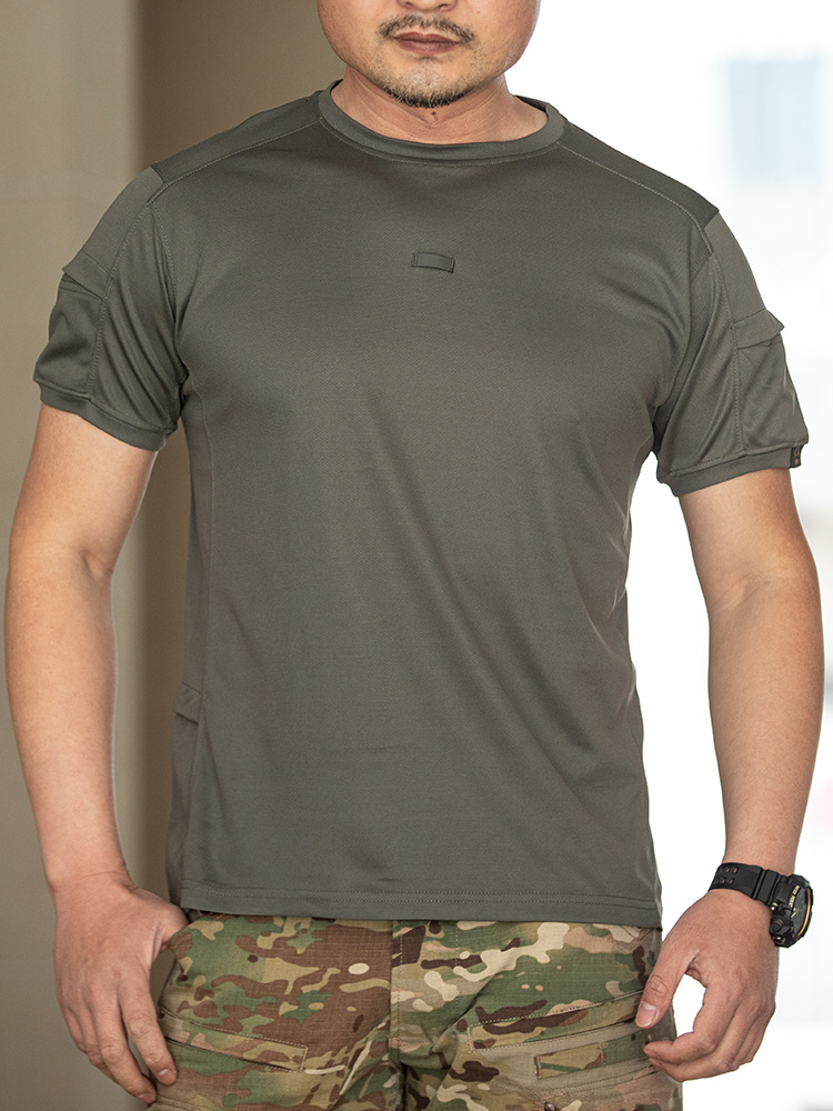 Терпение круглого воротника 2 поколения быстрый сухой с короткими рукавами мужской летний тактический открытый быстрый сухой костюм с карманами быстрая сухая спортивная футболка
