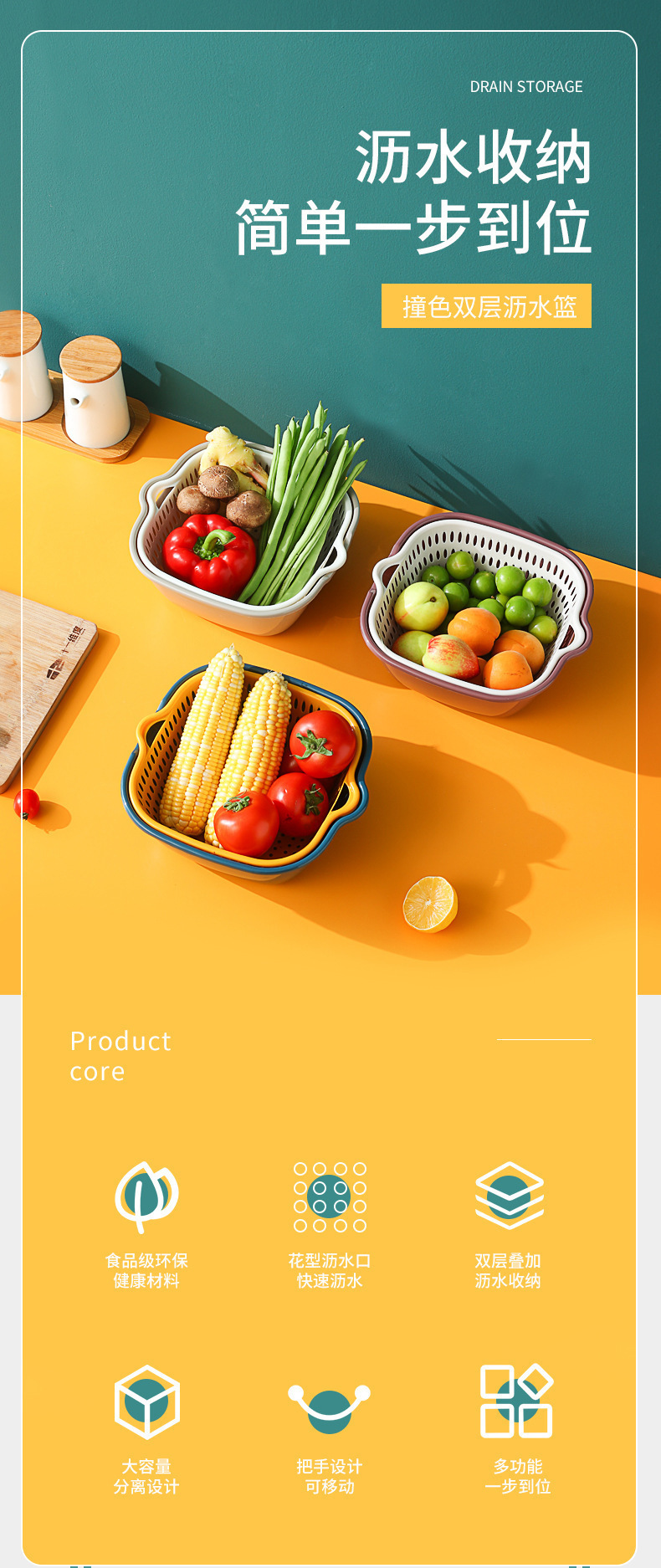 Фабрика Прямая продажа сливная корзина набор из шести частей Многофункциональная кухня пластиковая двухслойная бытовая корзина корзина для мойки овощей Большая сливная корзина